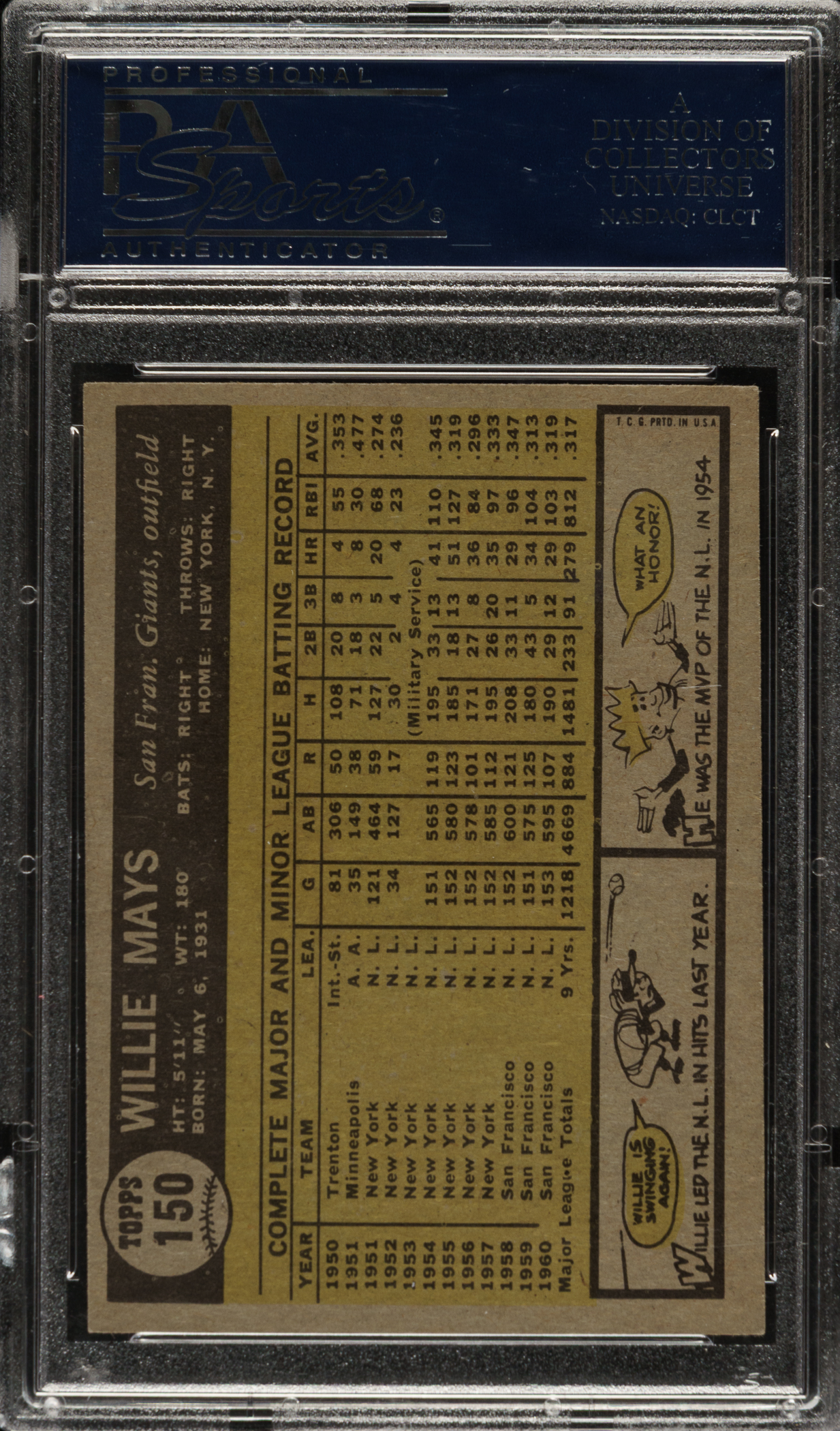 Graded EX-MT 6 by PSA. San Francisco Giants Hall of Famer Willie Mays.
