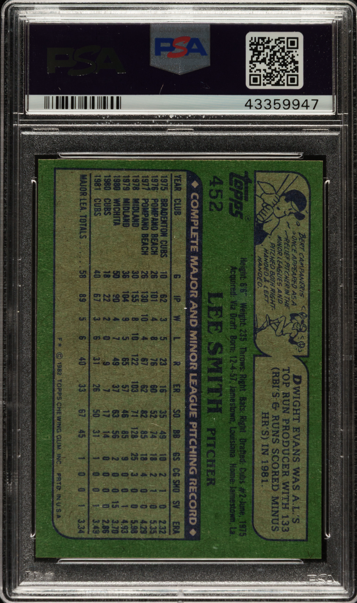 PSA/DNA has encapsulated the card, grading the signature Authentic and the card MINT 9. Chicago Cubs Hall of Famer Lee Smith.