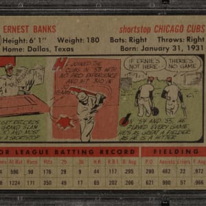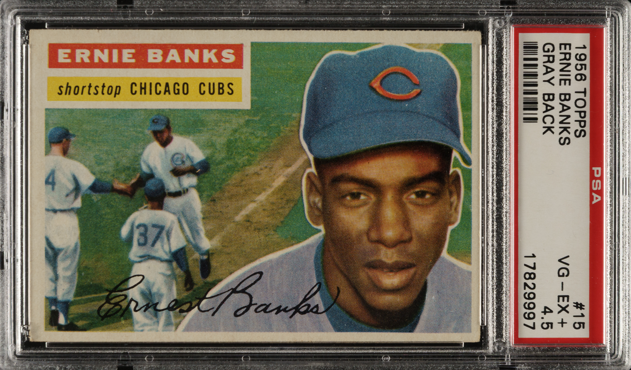Graded VG-EX+ 4.5 by PSA. Chicago Cubs Hall of Famer Ernie Banks.