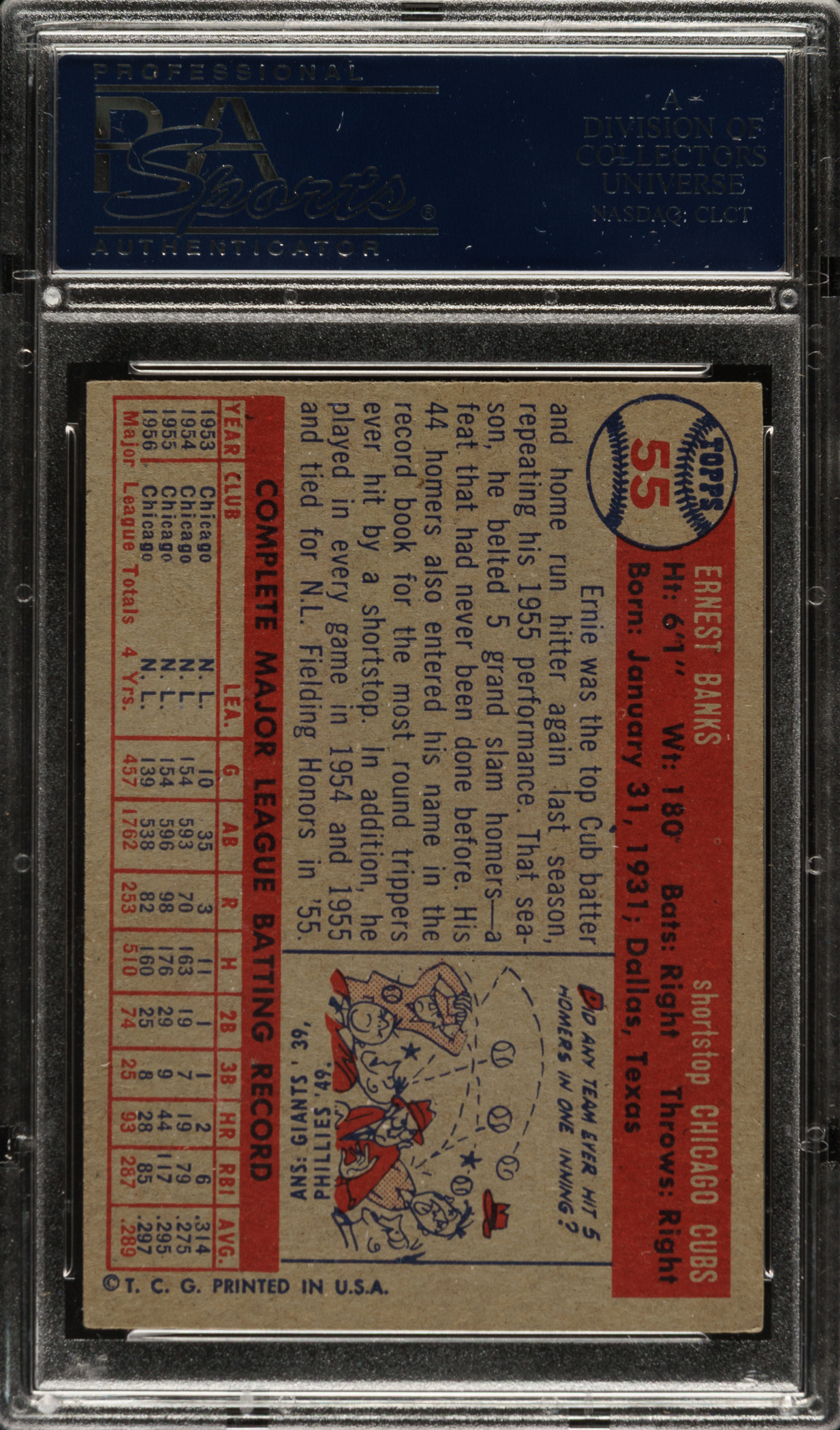 Lot # 2757: 1957 Topps #55 Ernie Banks PSA EX 5