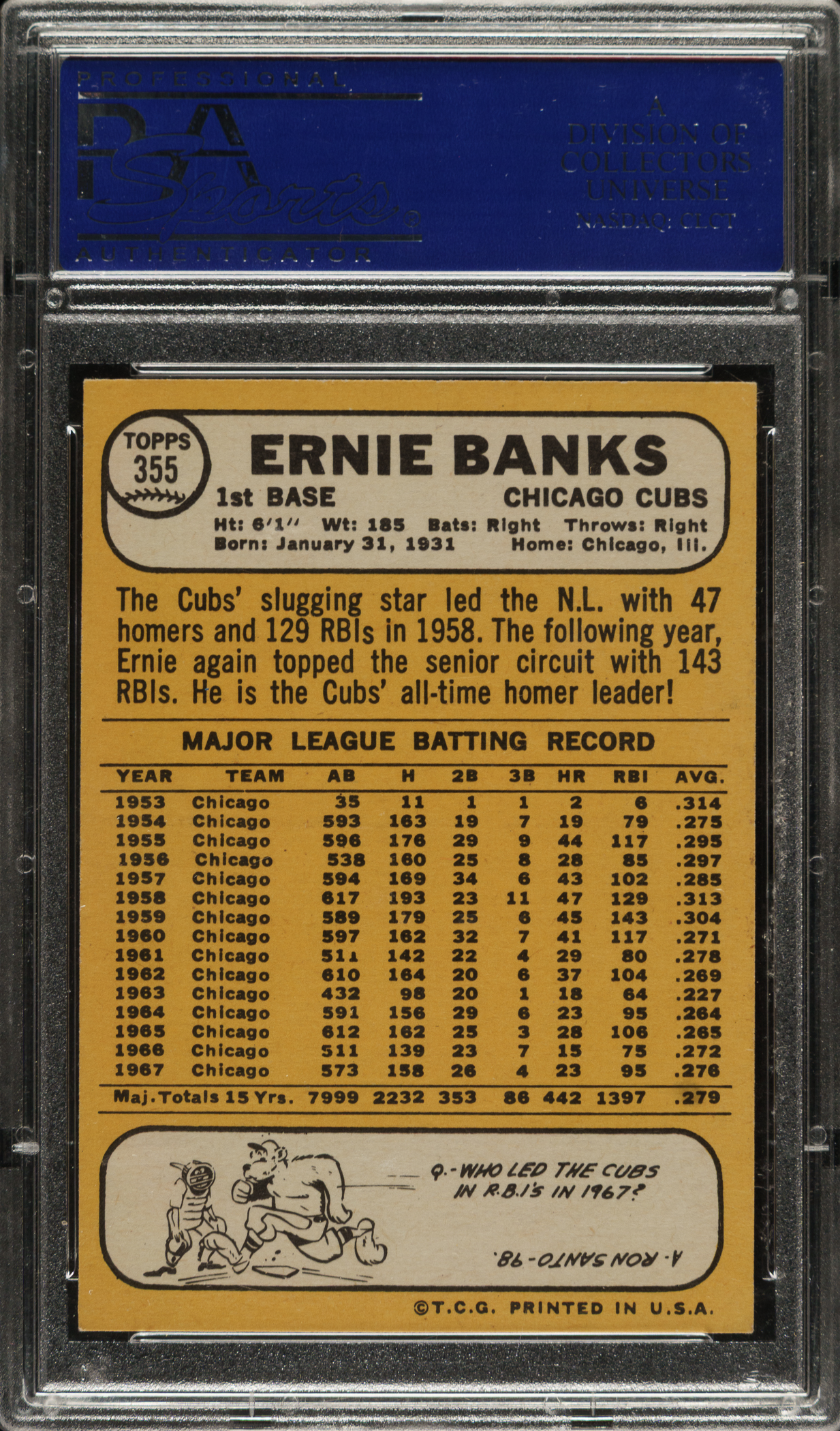 Lot # 3120: 1968 Topps #355 Ernie Banks PSA NM 7
