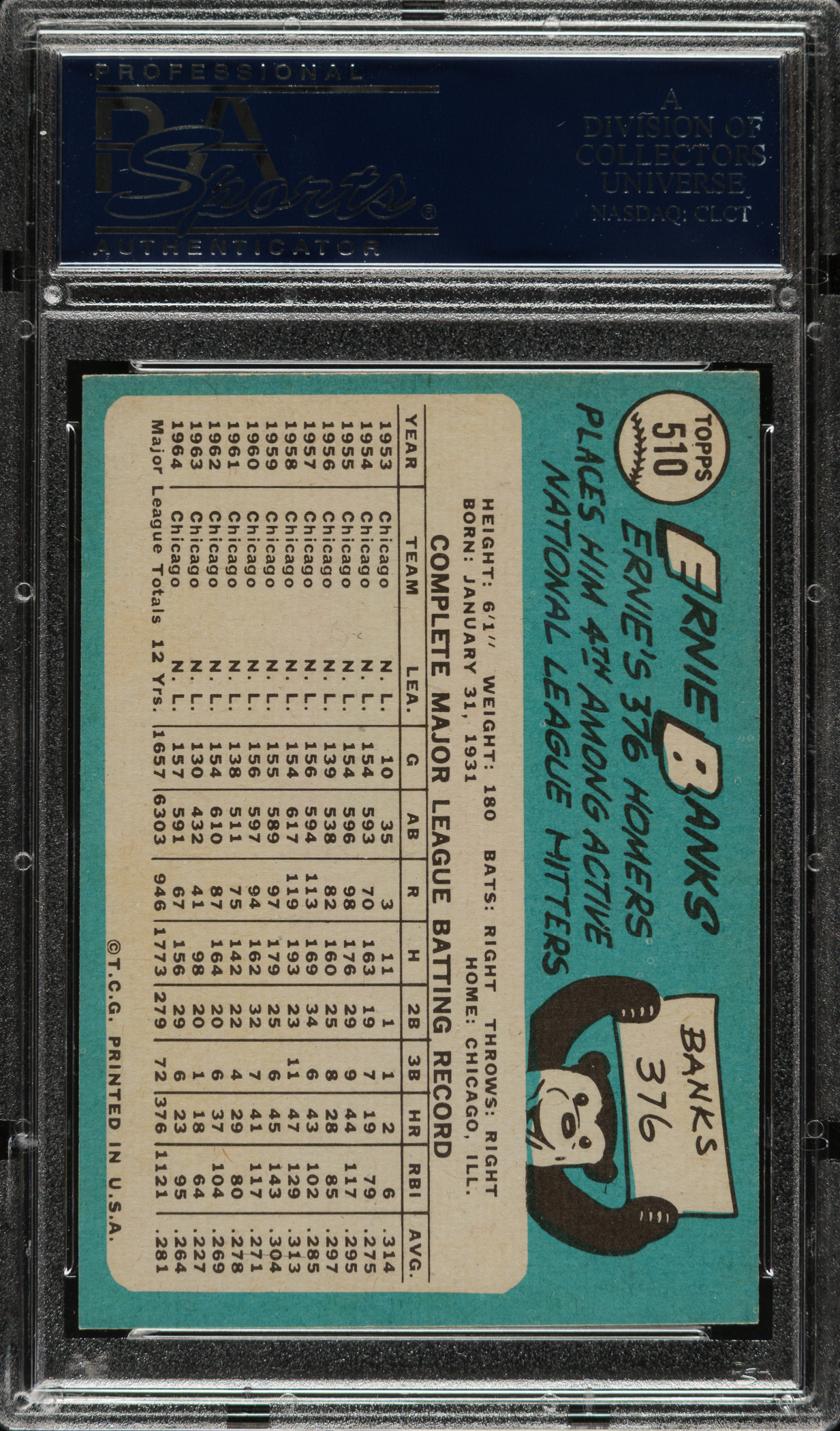 Lot # 3045: 1965 Topps #510 Ernie Banks PSA EX-MT 6