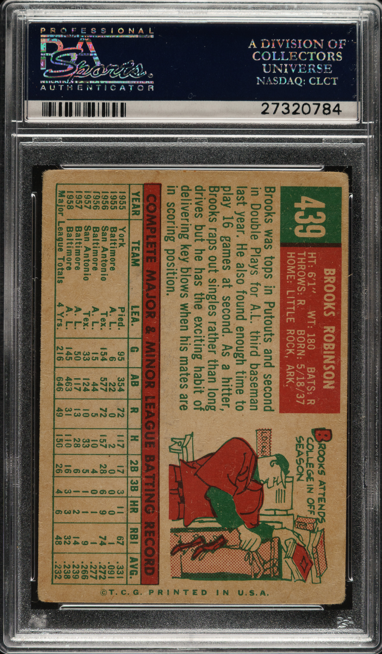 Lot # 3298: Signed 1959 Topps #439 Brooks Robinson - PSA/DNA