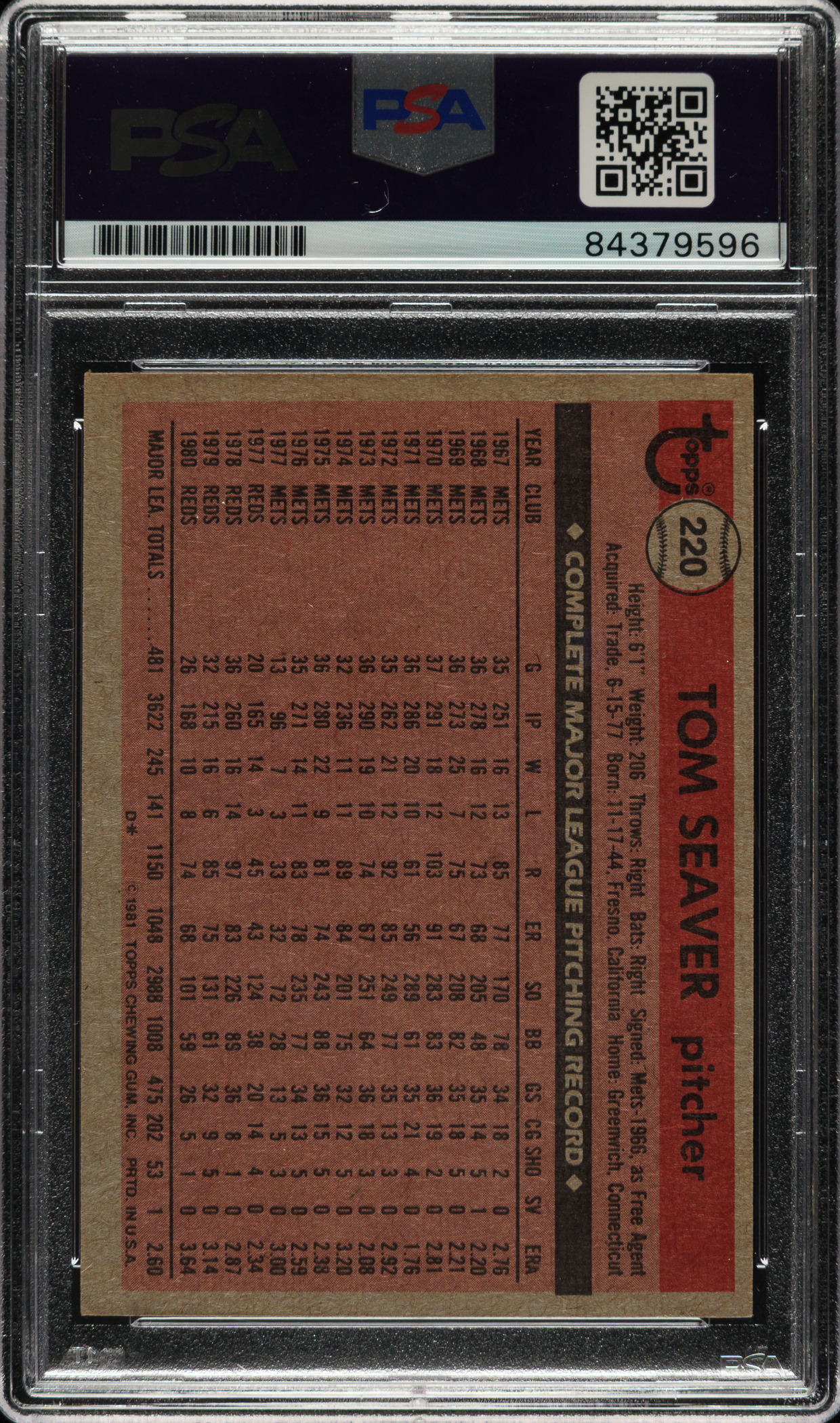 PSA/DNA has encapsulated the card, grading the signature Authentic. Cincinnati Reds Hall of Famer Tom Seaver.