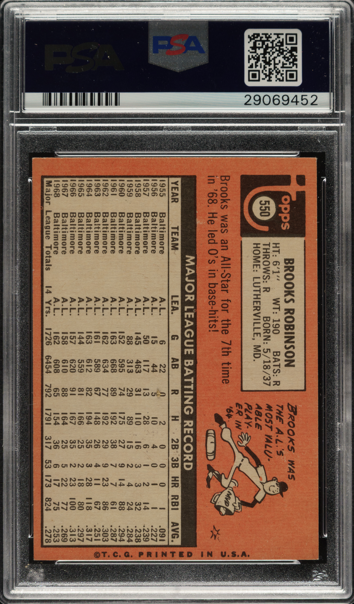 PSA/DNA has encapsulated the card, grading the signature Authentic. Baltimore Orioles Hall of Famer Brooks Robinson.