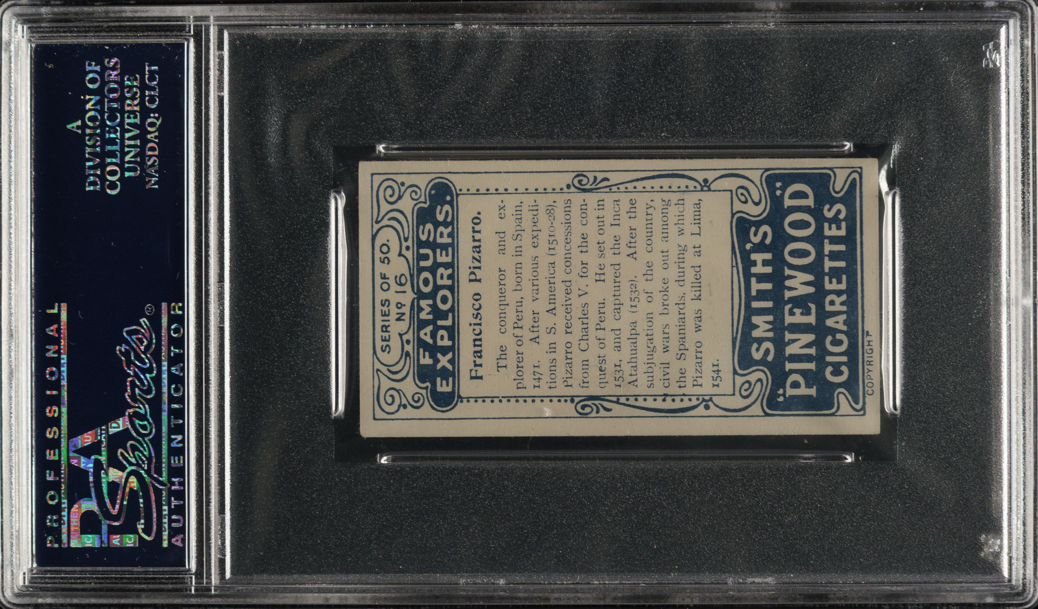 Lot # 4218: 1911 F. & J. Smith "Famous Explorers" #16 Francisco Pizzaro PSA EX 5