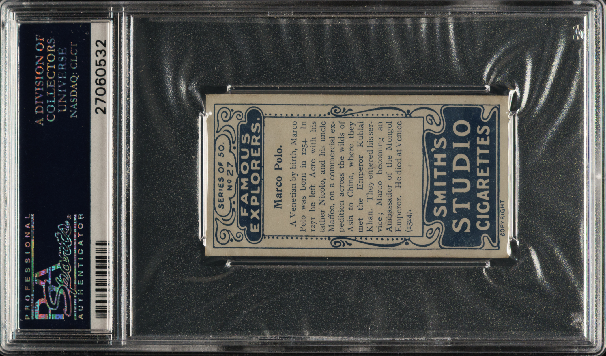 Lot # 4221: 1911 F. & J. Smith "Famous Explorers" #27 Marco Polo PSA VG-EX 4
