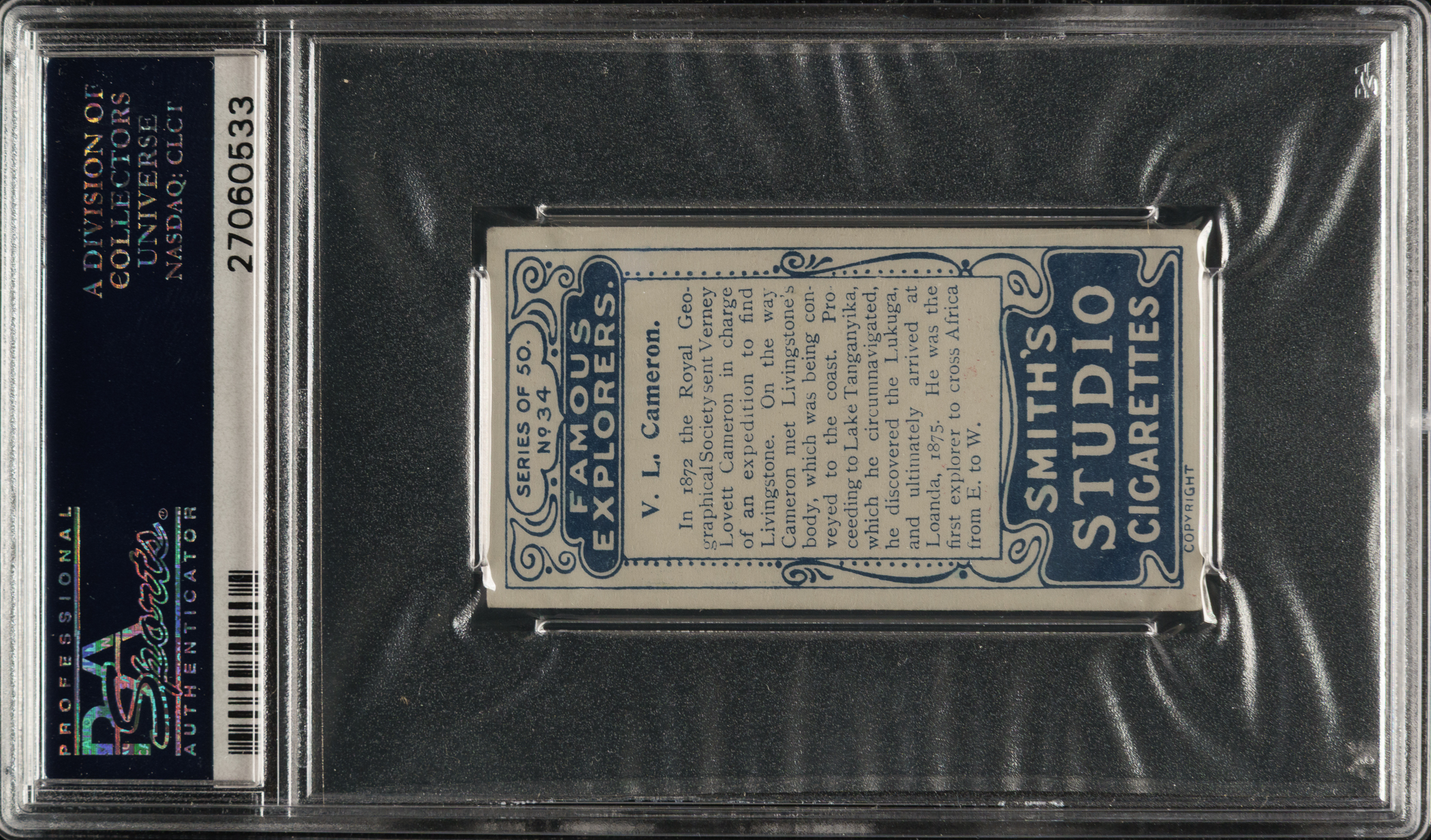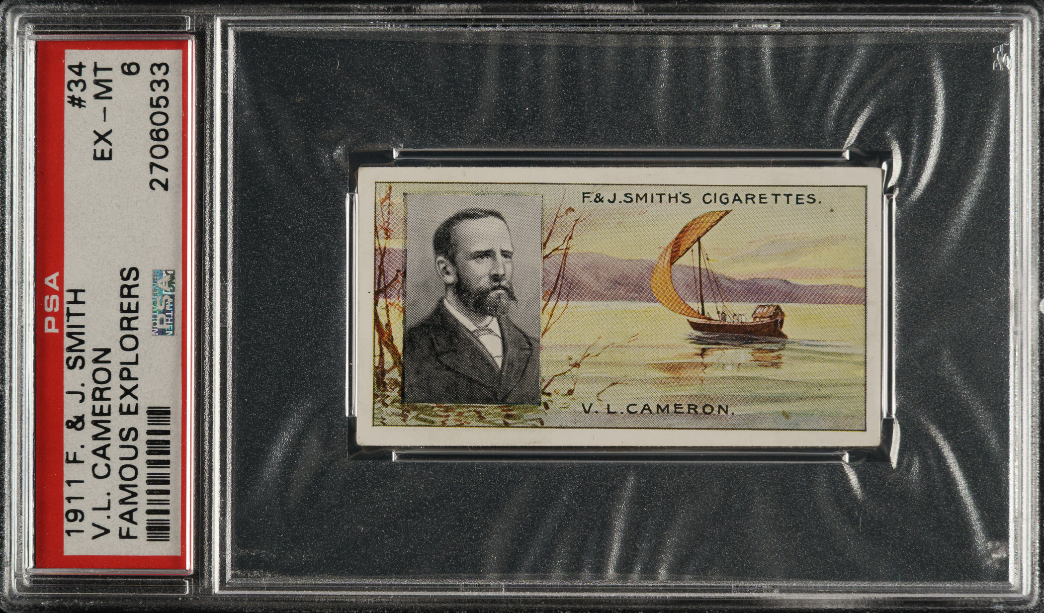 Lot # 4222: 1911 F. & J. Smith "Famous Explorers" #34 V. L. Cameron PSA EX-MT 6