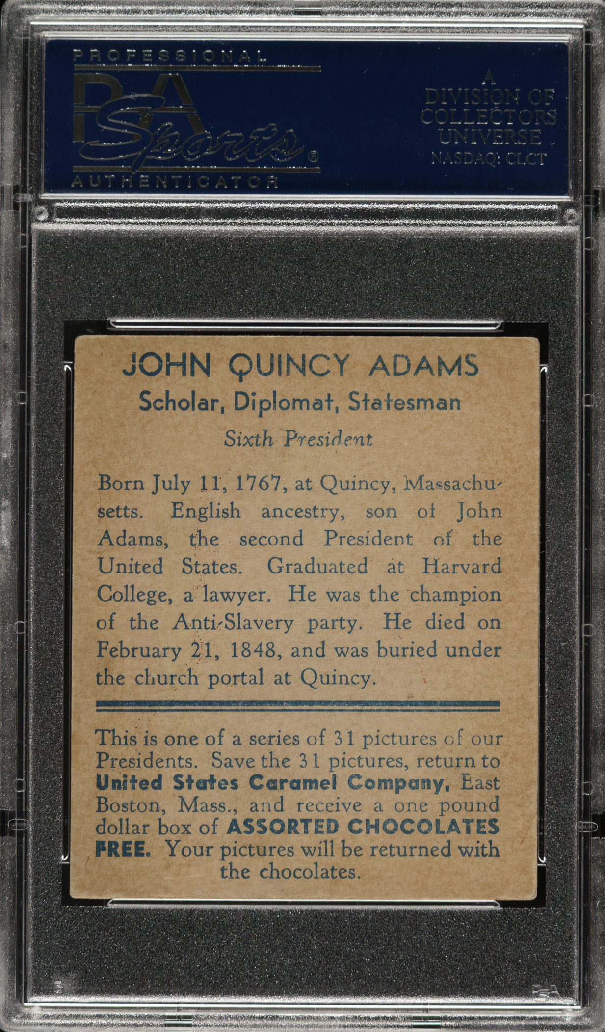 Lot # 4255: 1932 R114 U.S. Caramel "Presidents" John Quincy Adams PSA VG-EX 4