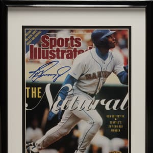 Seattle Mariners Hall of Famer Ken Griffey Jr. signed photograph. Dimensions: 12 x 15 inches. An Upper deck sticker is affixed to the photograph, and the piece also comes with an Upper Deck COA. Auction LOA from James Spence/JSA. The size/weight of this item requires that there will be an additional shipping charge for this lot.