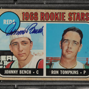 PSA/DNA has encapsulated the card, grading the signature Authentic. Cincinnati Reds Hall of Famer Johnny Bench.