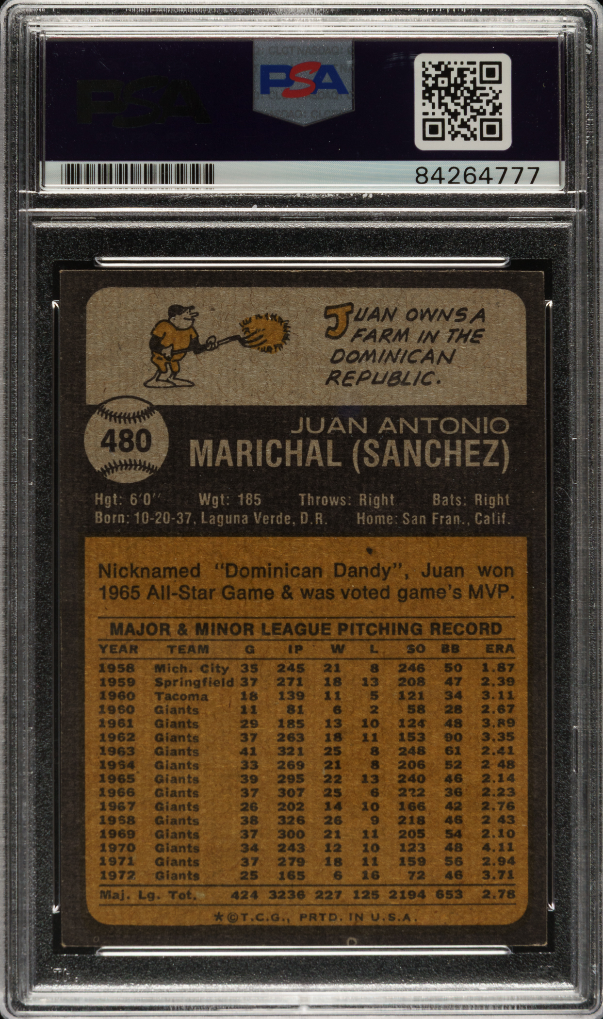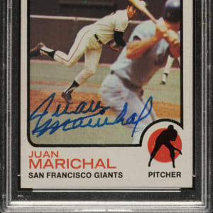 PSA/DNA has encapsulated the card, grading the signature Authentic. San Francisco Giants Hall of Famer Juan Marichal.