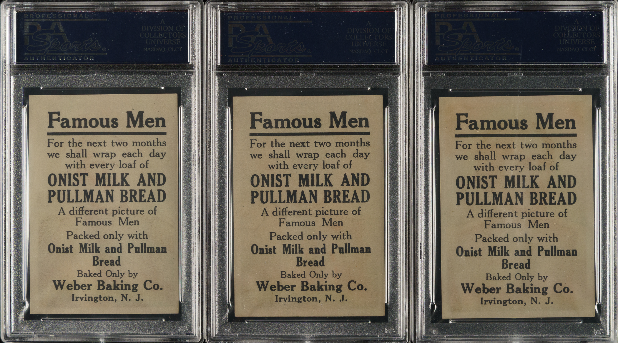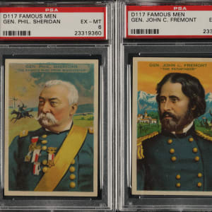 Trio of 1920 D117 Weber Baking "Famous Men" cards, each graded and encapsulated by PSA. This trio consists of the following: Fremont (EX-MT 6), Sheridan (EX-MT 6), and Sherman (NM 7). Total: 3 cards.