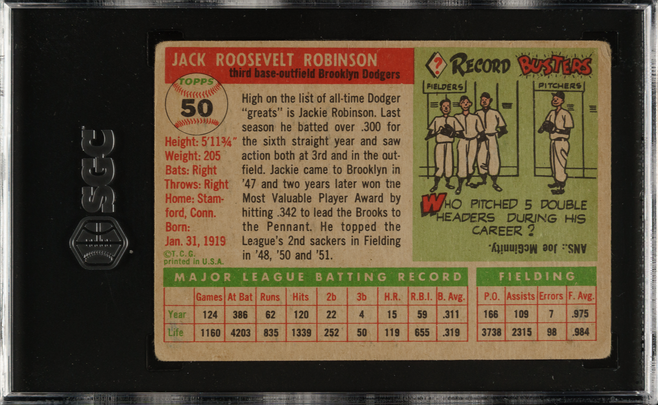 Graded VG 3 by SGC. Brooklyn Dodgers Hall of Famer Jackie Robinson.
