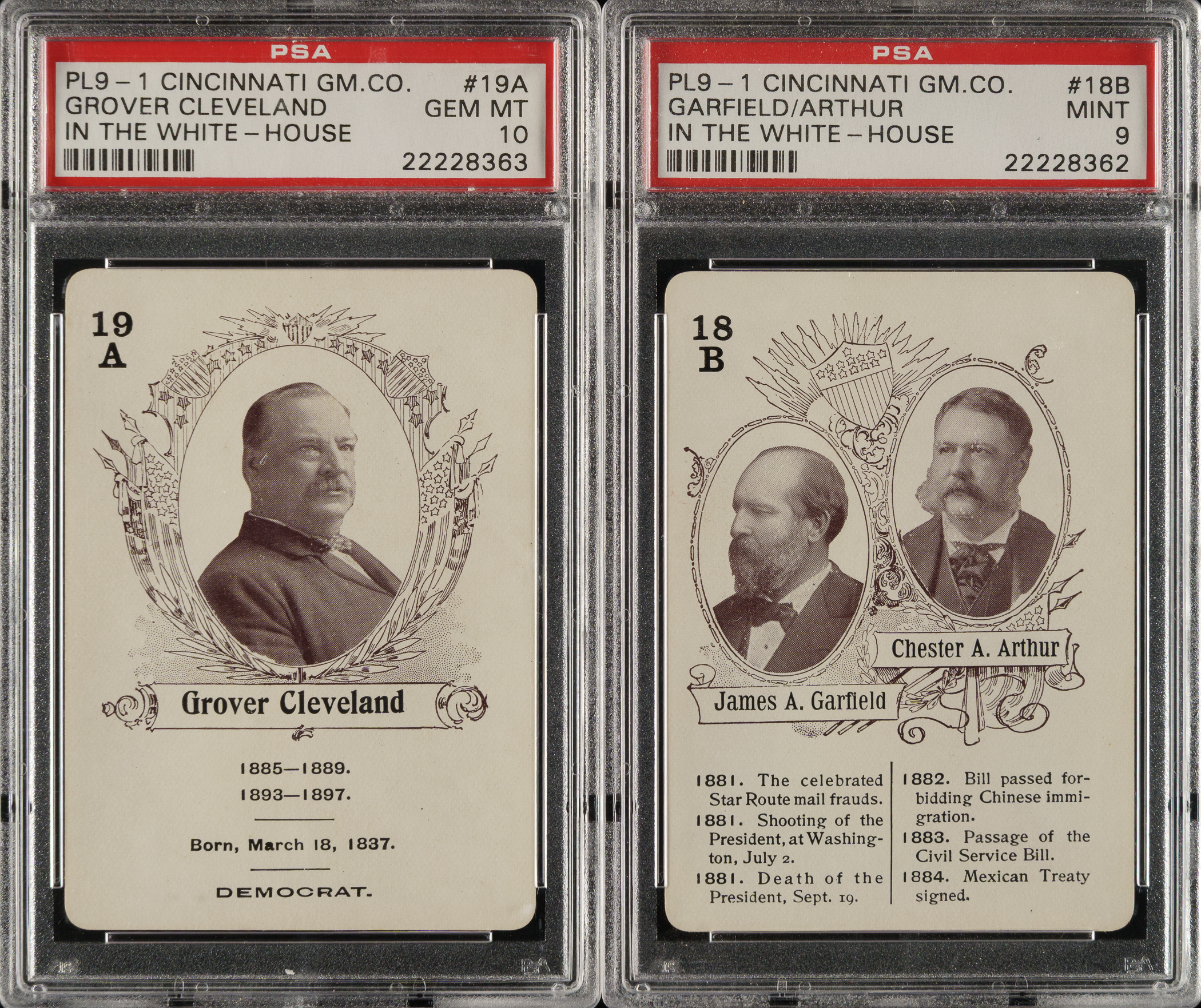 Pair of 1900 PL9-1 Cincinnati Gm. Co. In the White-House cards, both graded and encapsulated by PSA. This pair consists of the following: #18B (MINT 9) and 19A (GEM MINT 10). Total: 2 cards.