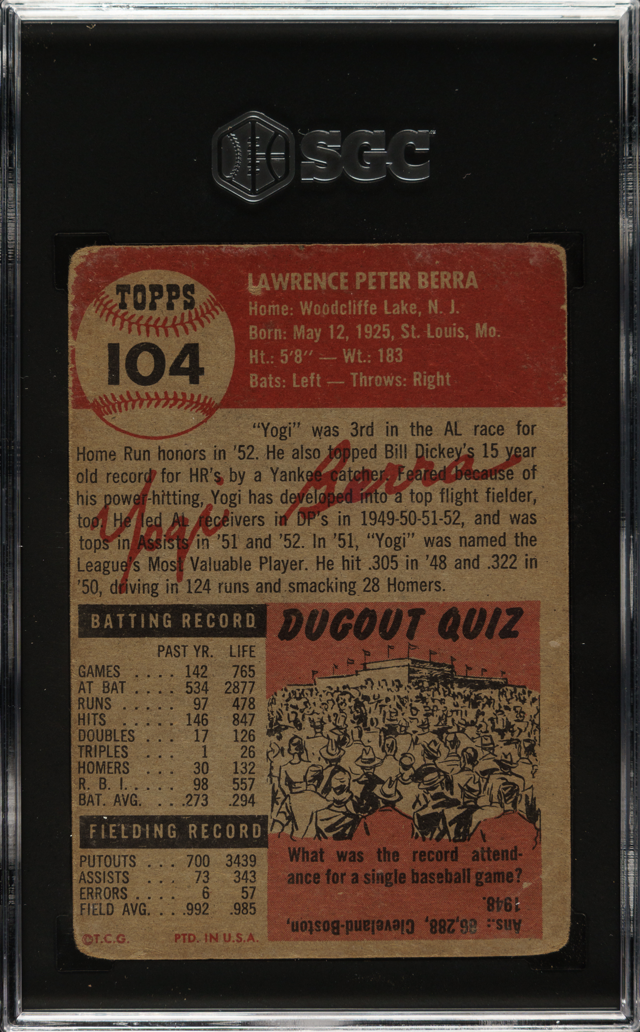 Graded FAIR 1.5 by SGC. New York Yankees Hall of Famer Yogi Berra.