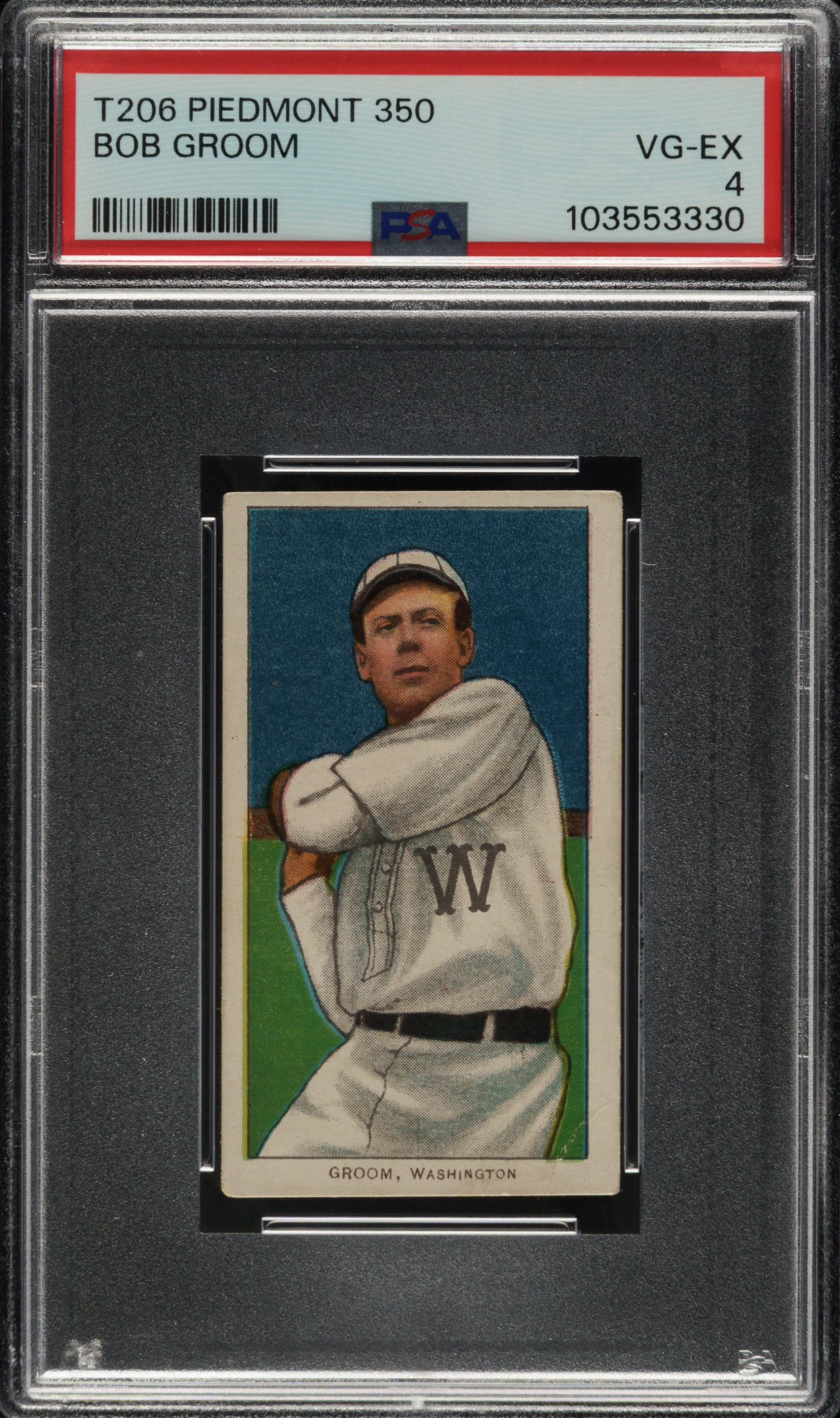 Lot # 639: 1909-1911 T206 White Border Bob Groom PSA VG-EX 4