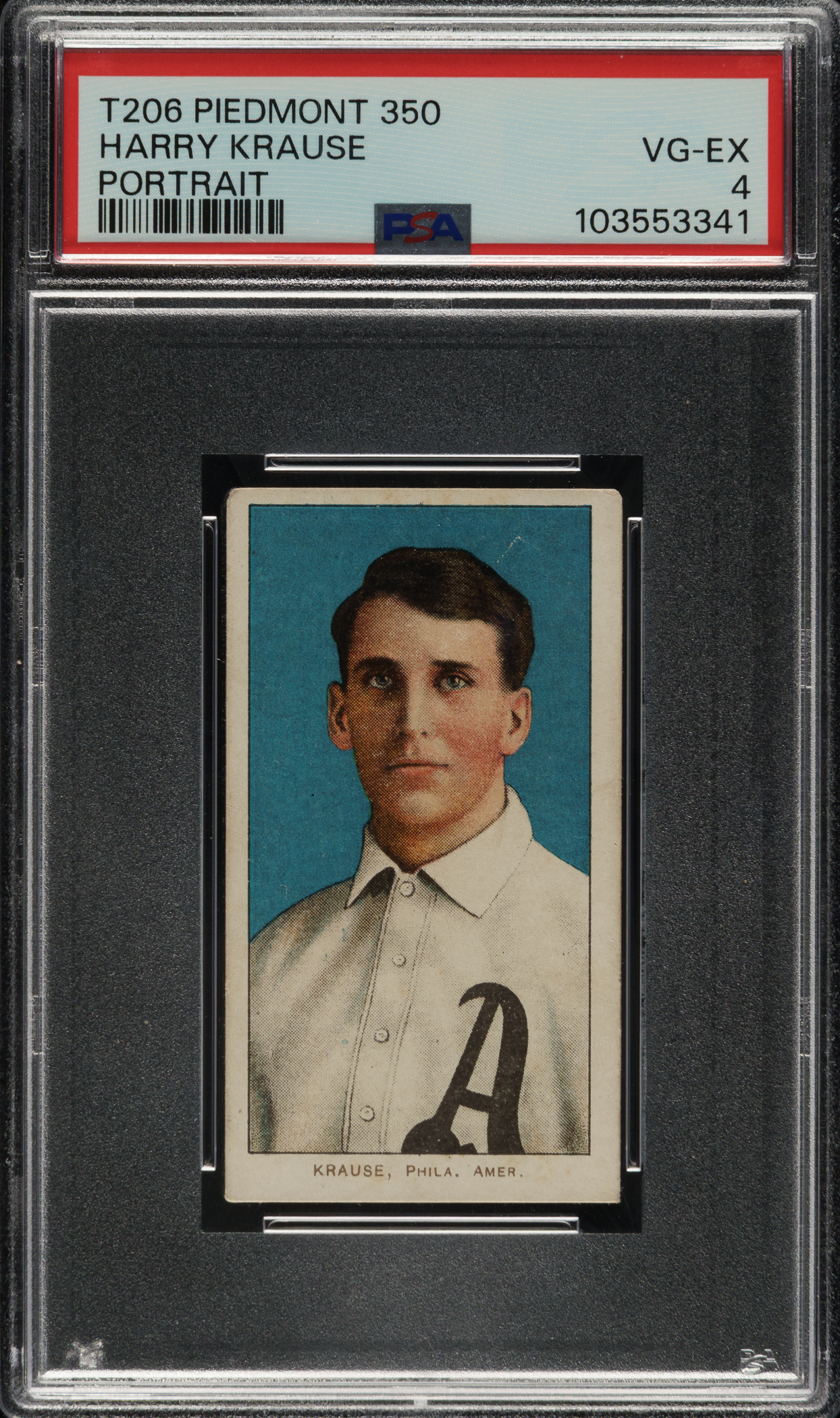 Lot # 791: 1909-1911 T206 White Border Harry Krause Portrait PSA VG-EX 4