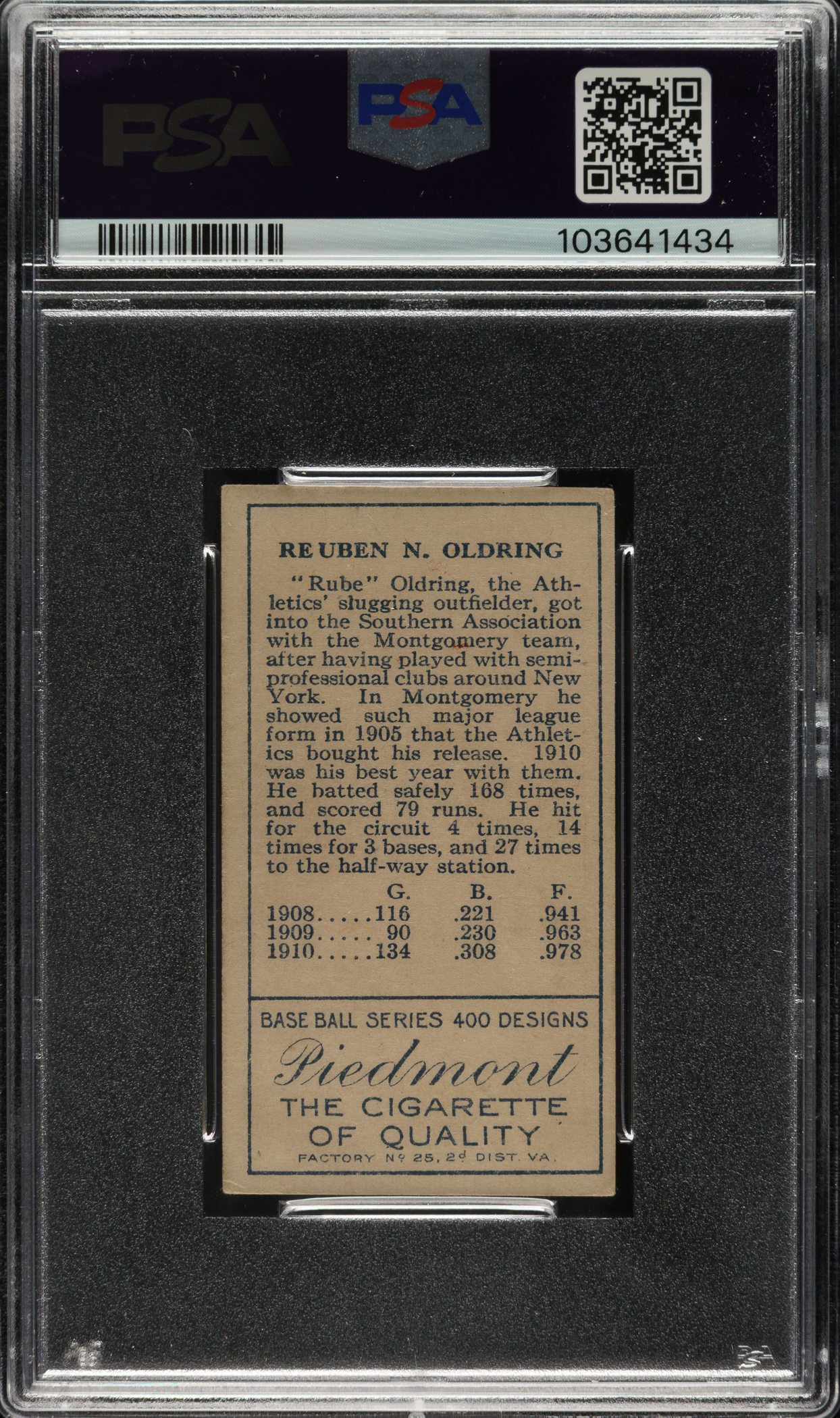 Graded VG+ 3.5 by PSA. Philadelphia Athletics.