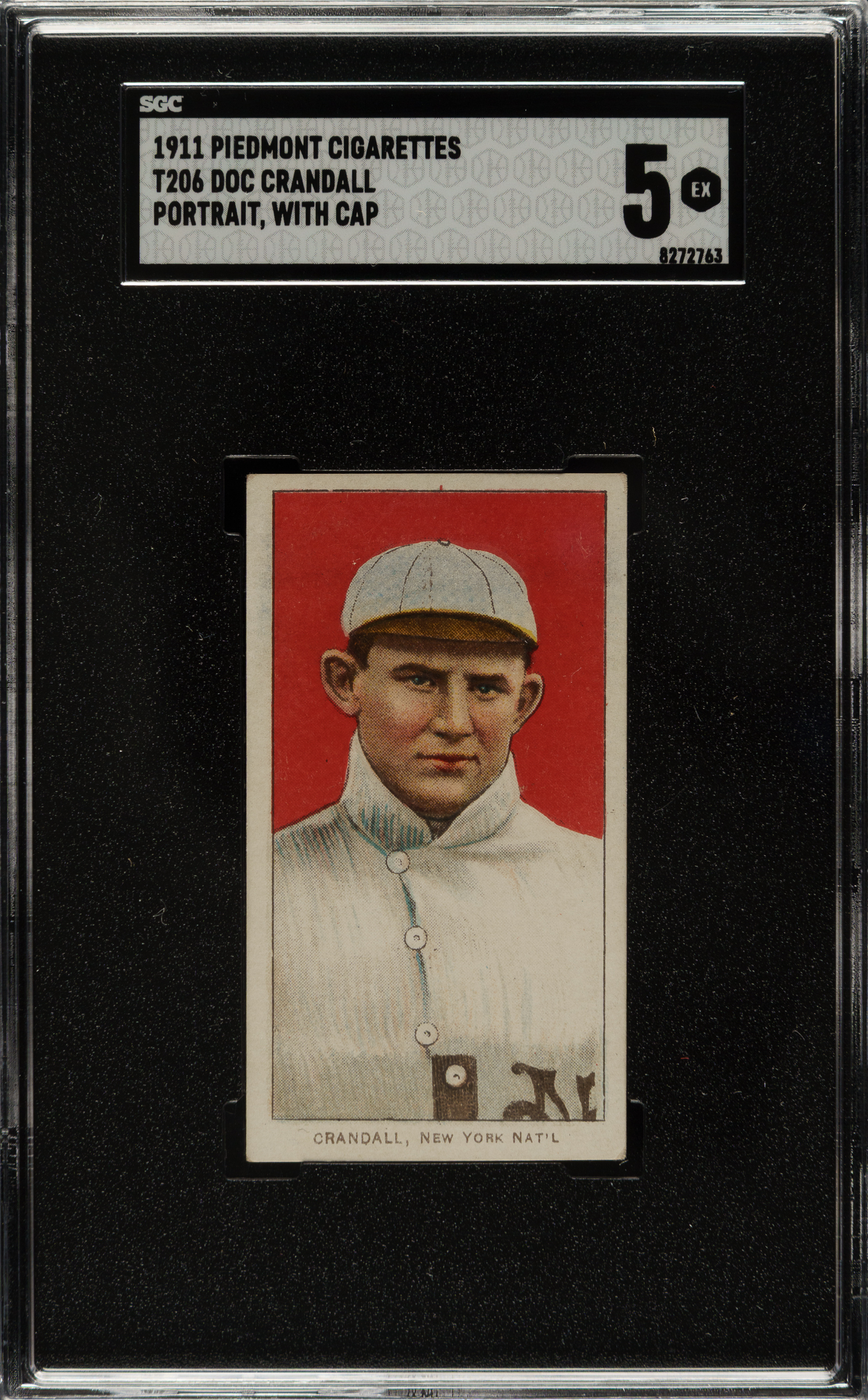 Lot # 415: 1909-1911 T206 White Border Doc Crandall Portrait with Cap SGC EX 5