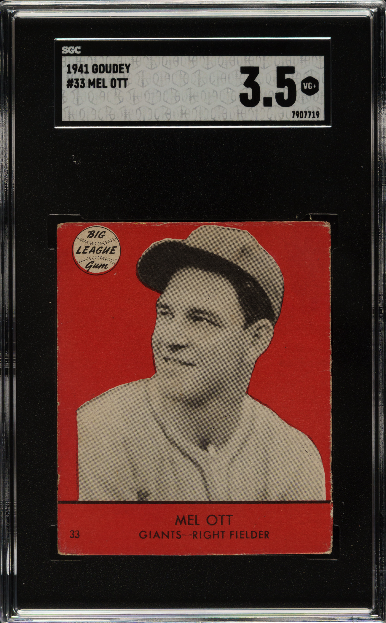Graded VG+ 3.5 by SGC. New York Giants Hall of Famer Mel Ott.