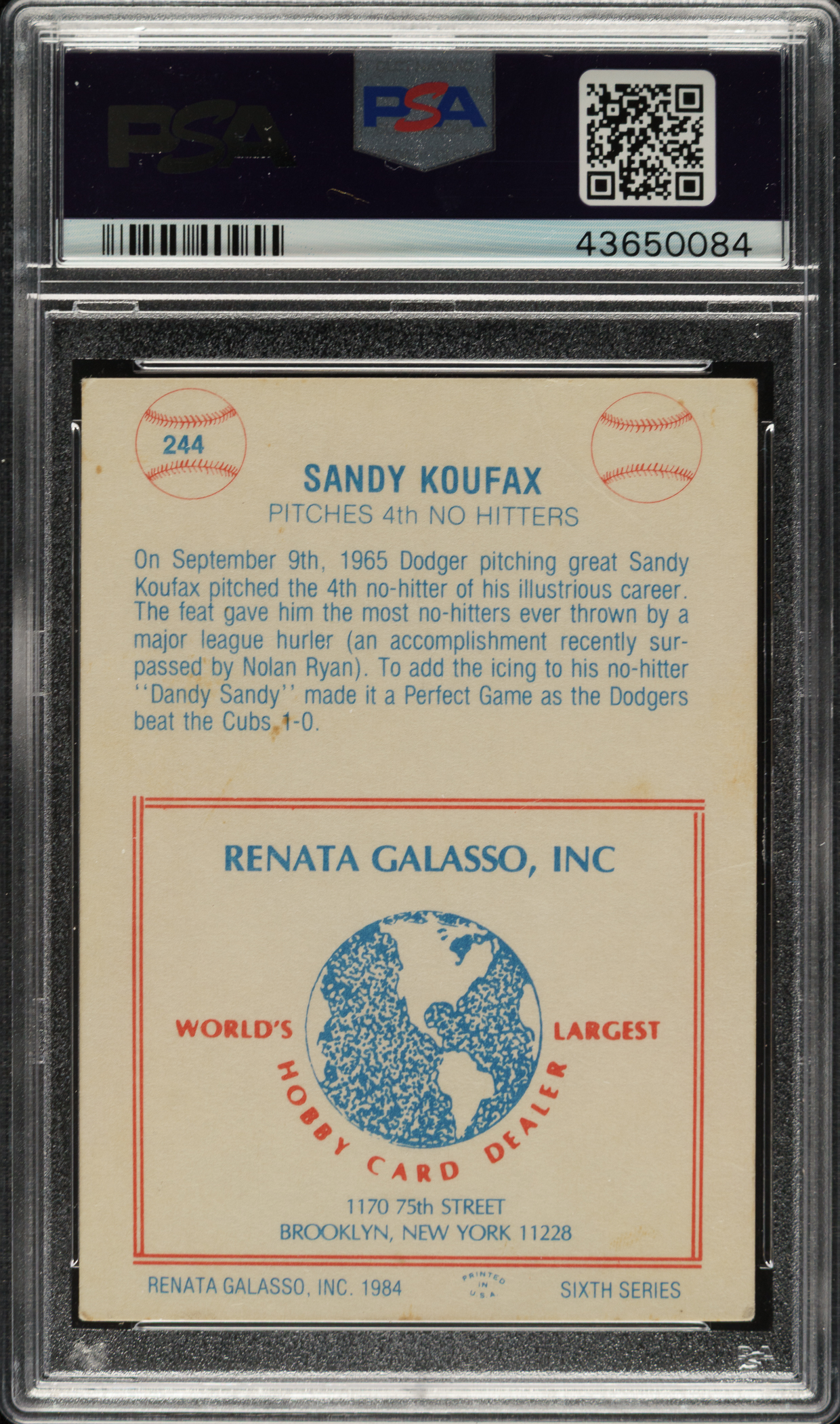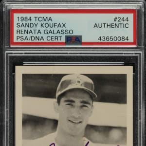 PSA/DNA has encapsulated the card, grading the signature Authentic. Brooklyn Dodgers Hall of Famer Sandy Koufax.