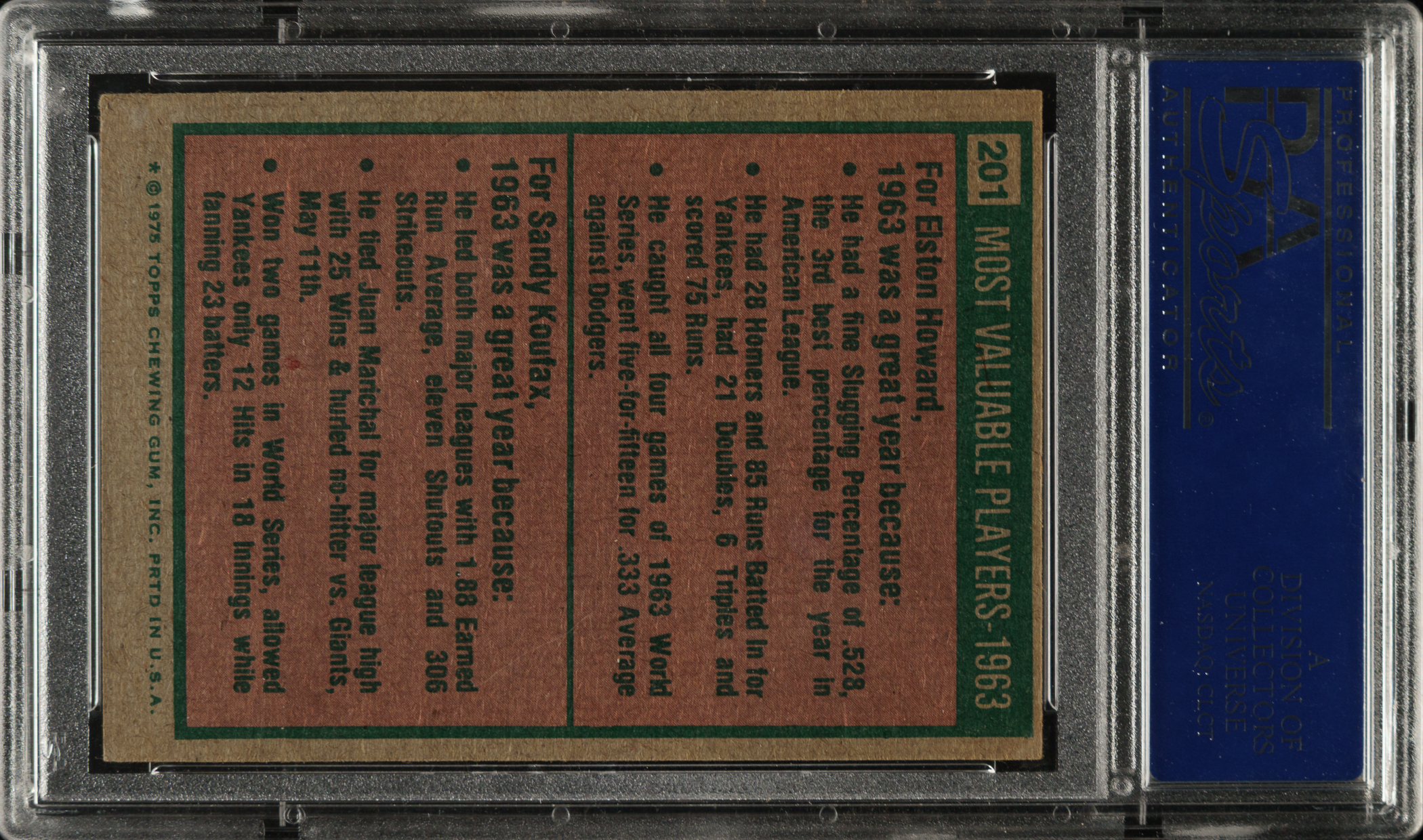 Lot # 3334: Signed 1975 Topps #201 Sandy Koufax - PSA/DNA