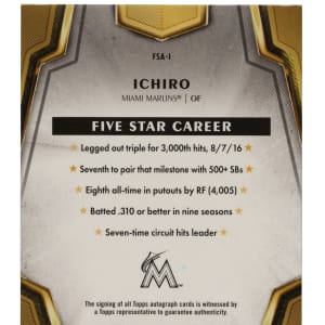 Miami Marlins Hall of Famer Ichiro Suzuki. Condition is Ex.