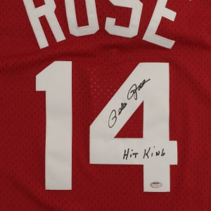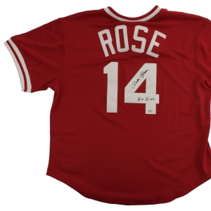 Cincinnati Reds Star Pete Rose signed jersey. Auction LOA from James Spence/JSA.