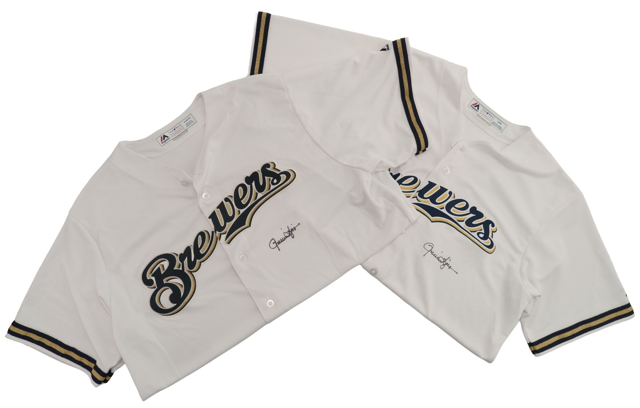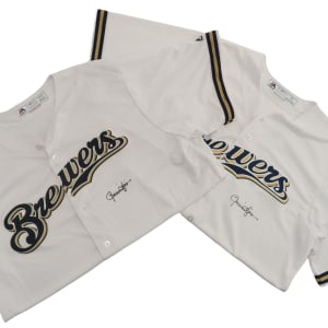 Pair of Milwaukee Brewers Hall of Famer Rollie Fingers signed jerseys. Auction LOA from James Spence/JSA.