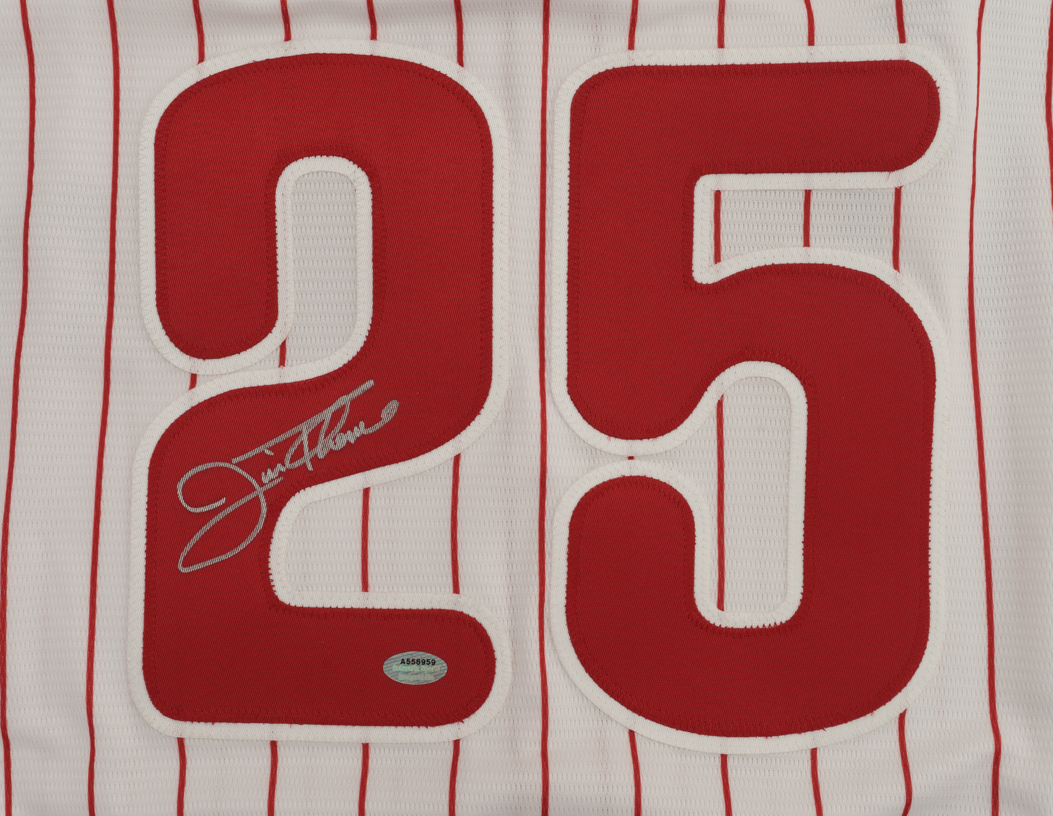 Philadelphia Phillies Hall of Famer Jim Thome signed jersey. Auction LOA from James Spence/JSA.