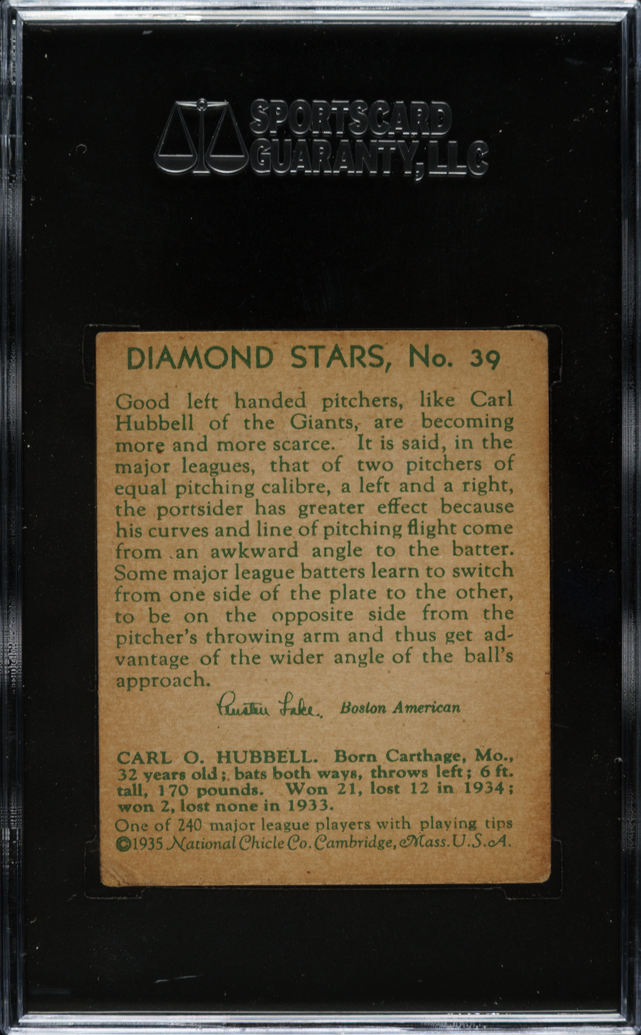 Graded VG/EX 50 by SGC. New York Giants Hall of Famer Carl Hubbell.