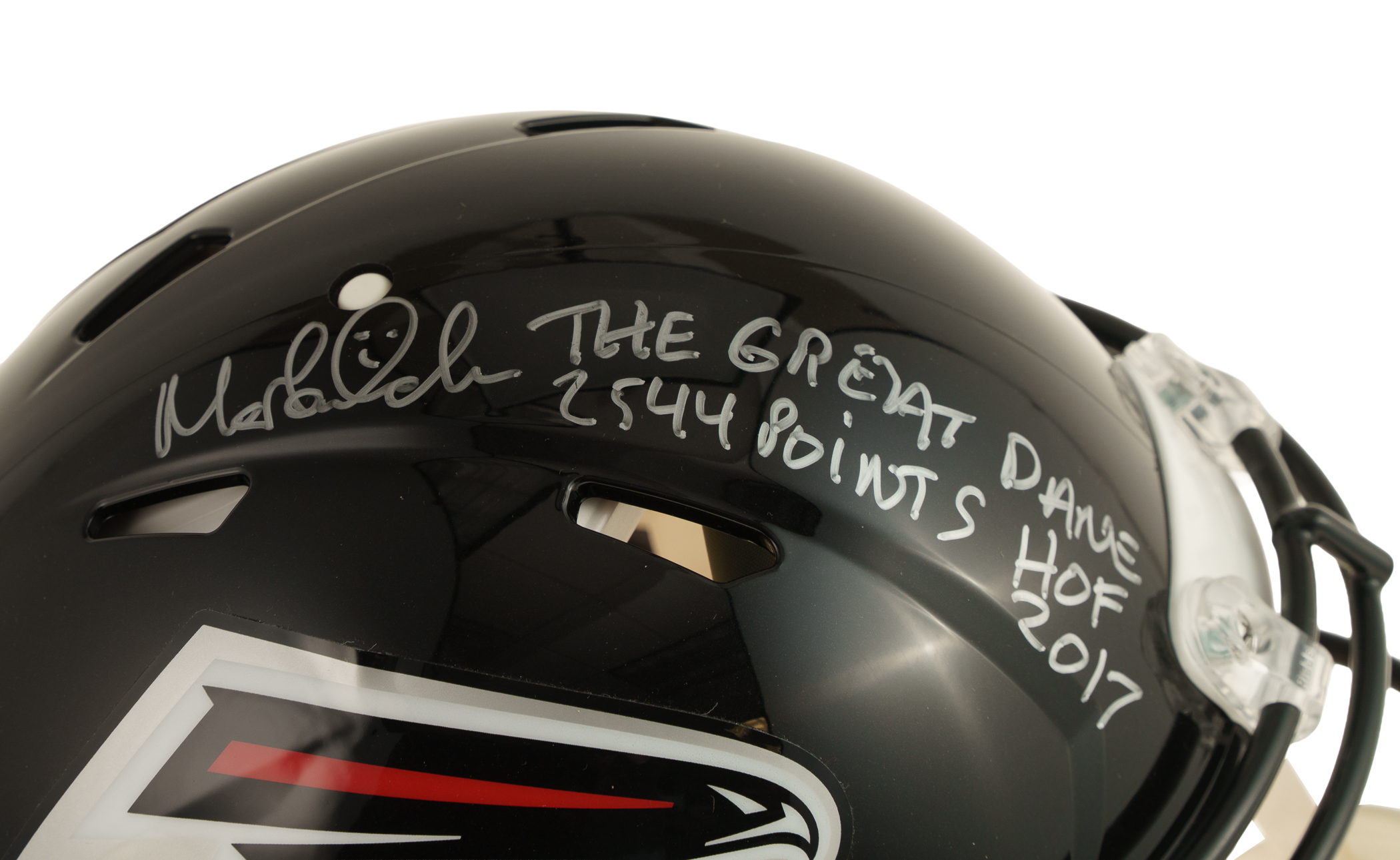 Atlanta Falcons Hall of Famer Morten Andersen signed helmet. Auction LOA from James Spence/JSA. The size/weight of this item requires that there will be an additional shipping charge for this lot.