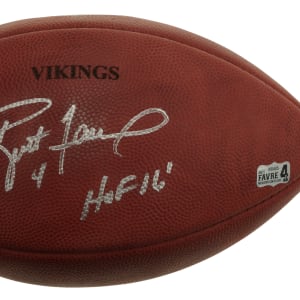 Green Bay Packers/Minnesota Vikings Hall of Famer Brett Farve signed football. Auction LOA from James Spence/JSA. The size/weight of this item requires that there will be an additional shipping charge for this lot.