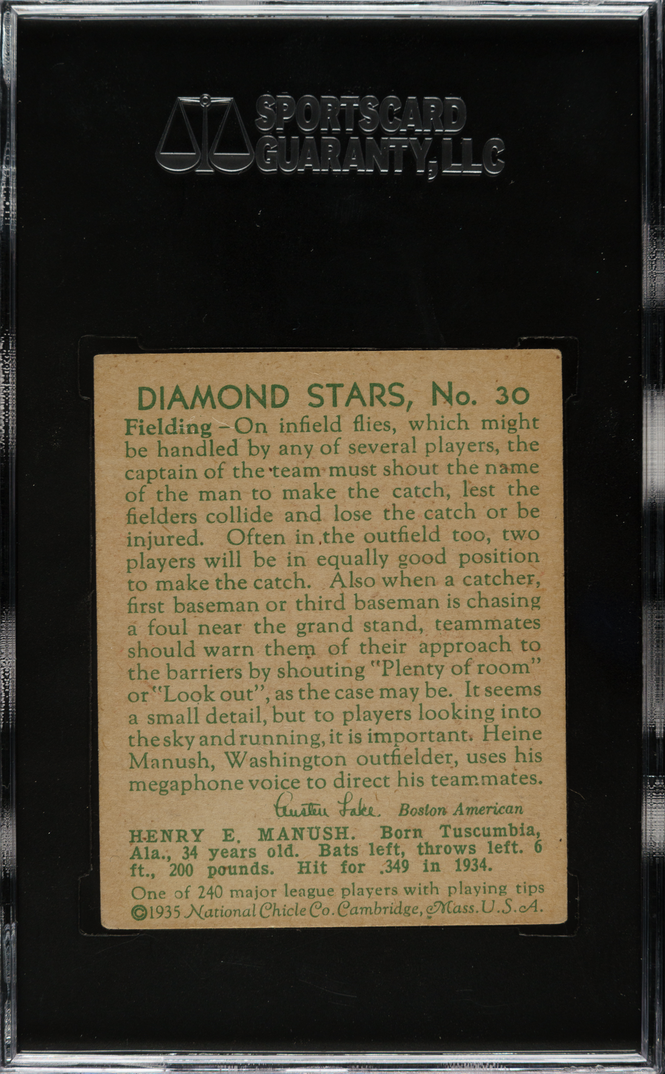 Graded GOOD 30 by SGC. Washington Senators Hall of Famer Heinie Manush.