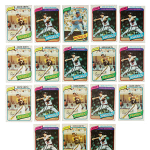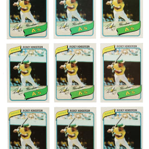 Presented are nine complete 726-card sets of 1980 Topps baseball. The 1980 Topps set is highlighted by Rickey Henderson's rookie card as well as numerous other Hall of Famers and stars of the era, including Nolan Ryan, Pete Rose, and Ozzie Smith. Overall condition is 54% Nr/Mt to Nr/Mt-Mt (including some Mint), 39% Ex to Ex-Mt, and 7% Vg to Vg-Ex. Keys: Nine #393 Smith (Nr/Mt-Mt, two Nr/Mt, four Ex-Mt, Vg-Ex, and trimmed, otherwise Vg+), nine 482 Henderson RC (two Nr/Mt-Mt, four Nr/Mt, two Ex-Mt, and Ex), and nine 580 Ryan (three Nr/Mt, three Ex-Mt, and three Ex). This is an extremely attractive and mostly high-grade collection of complete sets of 1980 Topps baseball cards, with many impressive highlights. Total: 9 sets, 6,534 cards. The size/weight of this item requires that there will be an additional shipping charge for this lot.