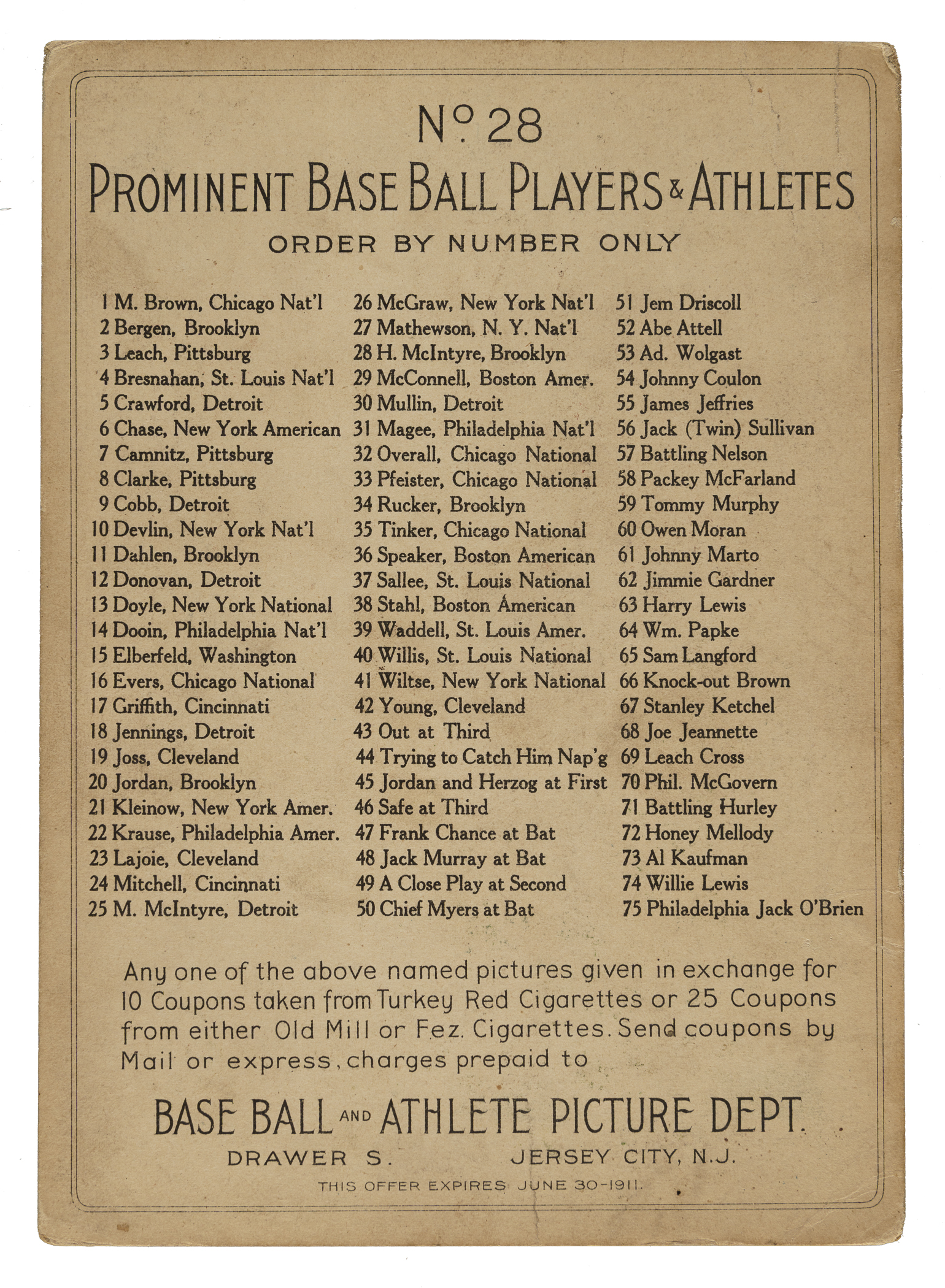 Brooklyn Superbas and Chicago Cubs. Condition is Fr due to light creasing and scattered staining.