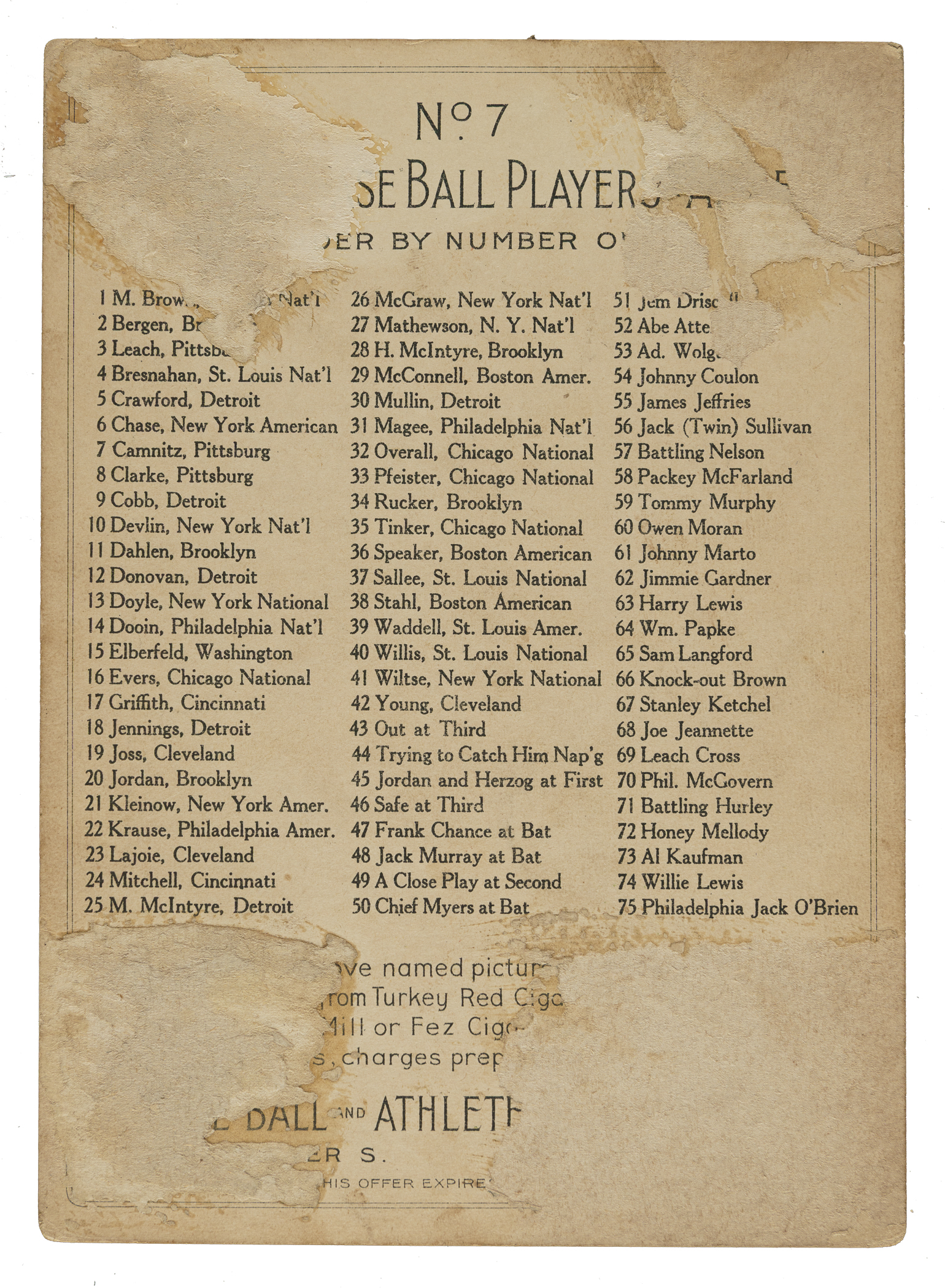Pittsburgh Pirates. Condition is Pr due to paper loss on the reverse.