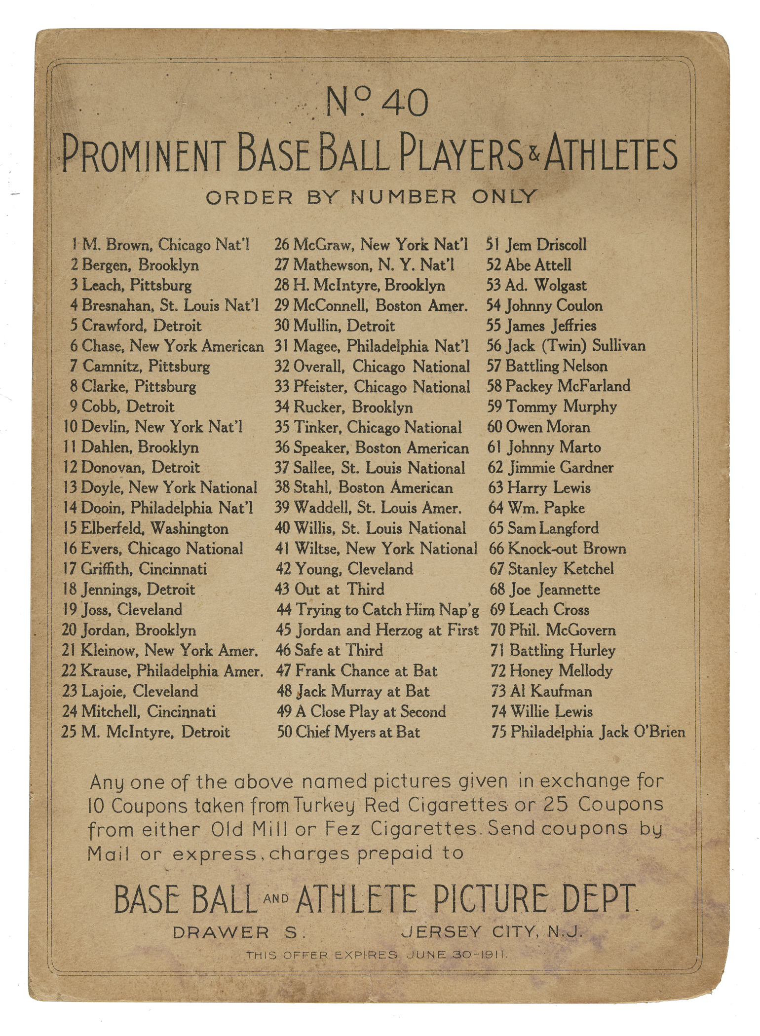 Pittsburgh Pirates Hall of Famer Vic Willis. Condition is Pr due to heavy creasing and staining.