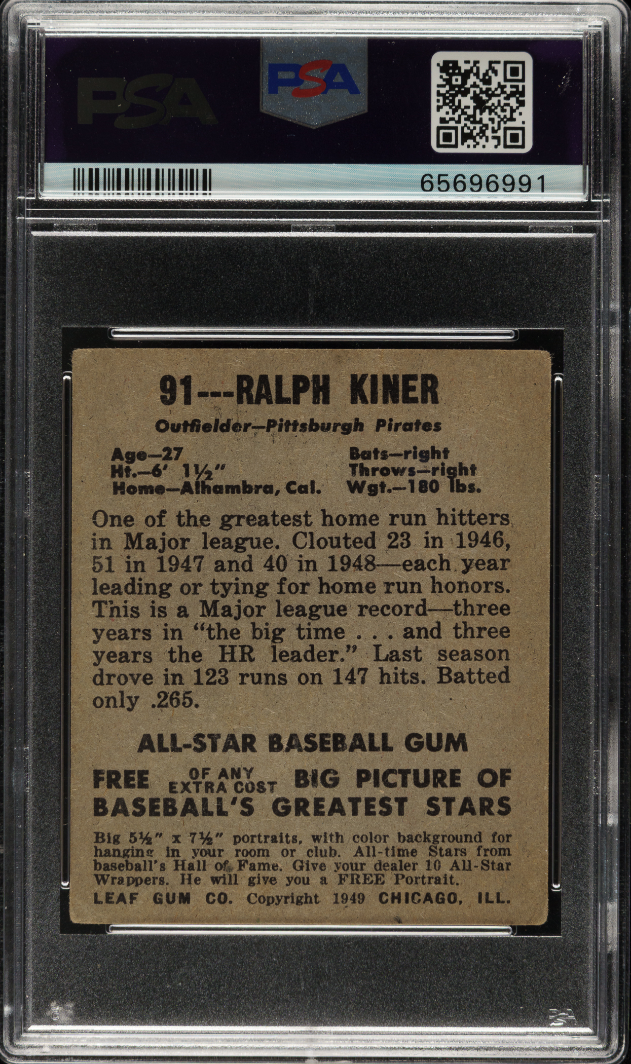 Graded GOOD+ 2.5 by PSA. Pittsburgh Pirates Hall of Famer Ralph Kiner.