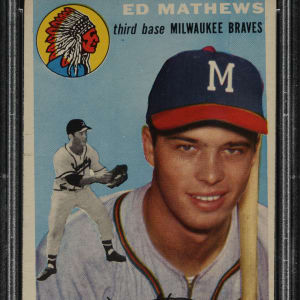 Graded VG-EX 4 by PSA. Milwaukee Braves Hall of Famer Eddie Mathews.