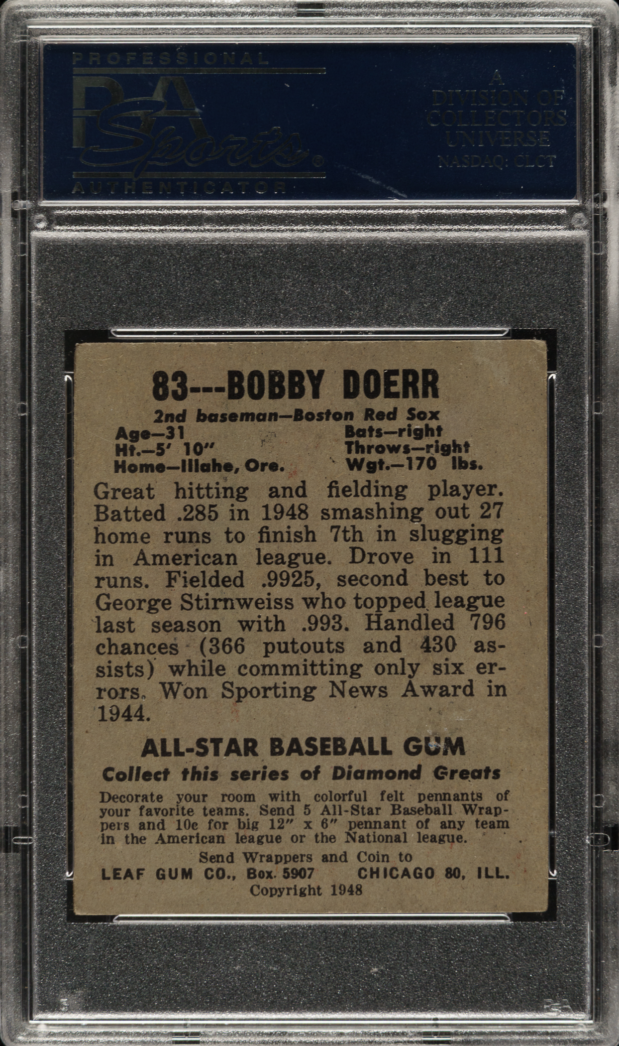 Graded VG 3 by PSA. Boston Red Sox Hall of Famer Bobby Doerr.