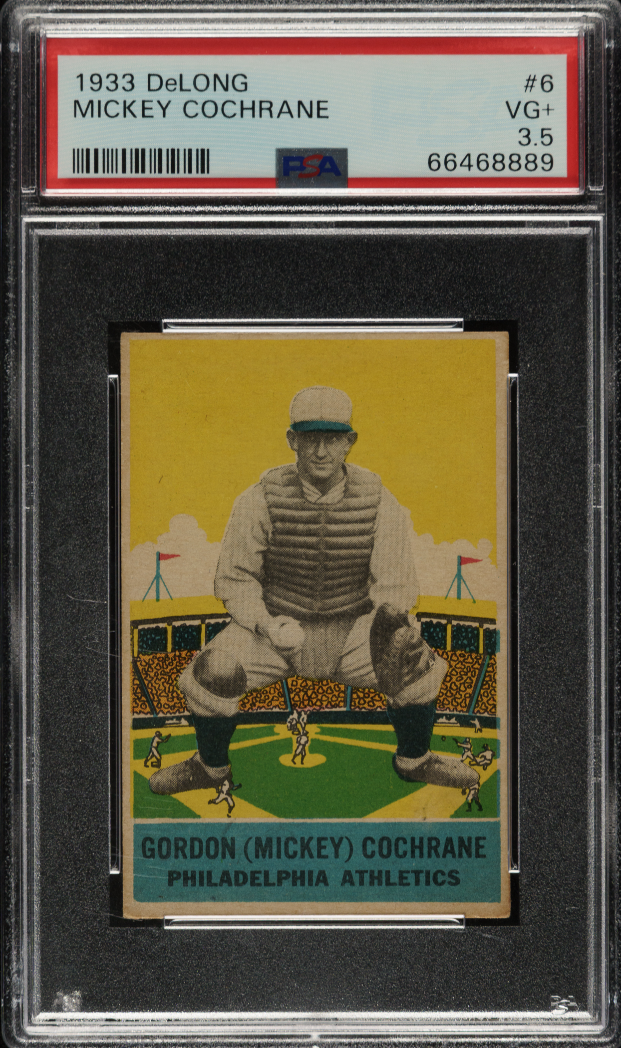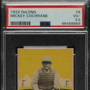 Graded VG+ 3.5 by PSA. Philadelphia Athletics Hall of Famer Mickey Cochrane.