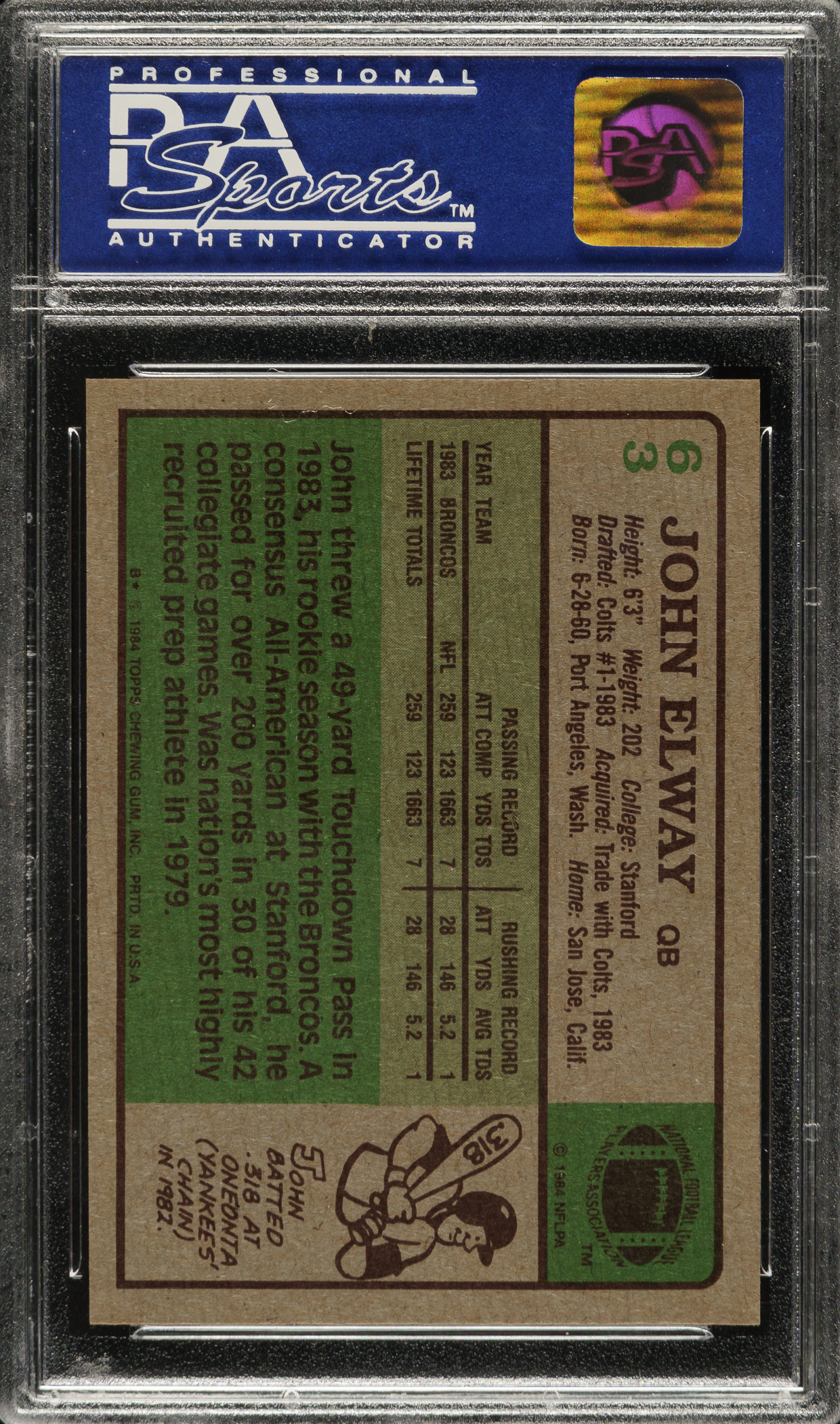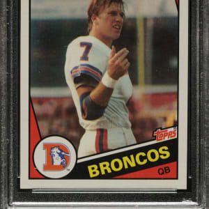 Graded NM-MT 8 by PSA. Denver Broncos football Hall of Famer John Elway.