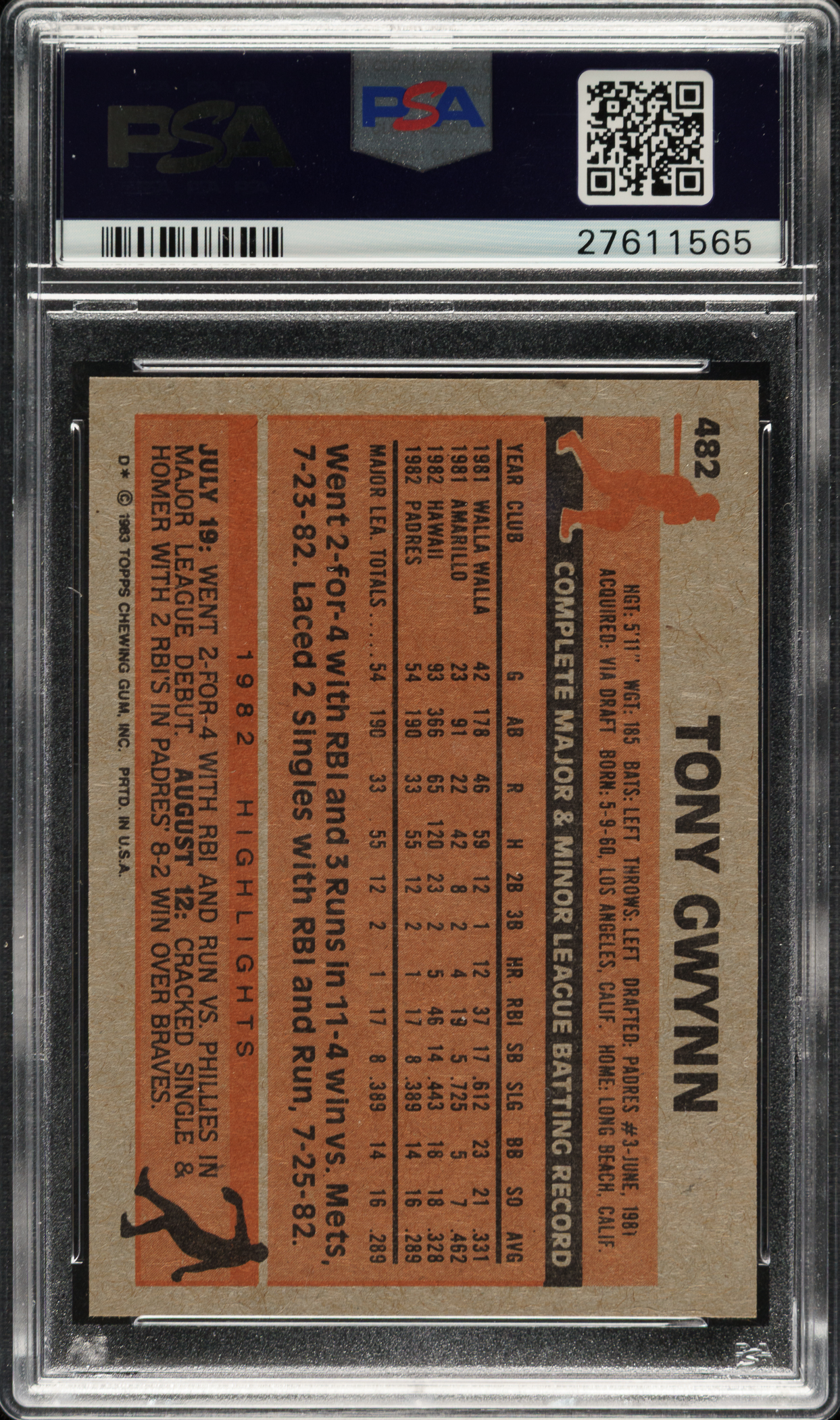 Graded GEM MINT 10 by PSA. San Diego Padres Hall of Famer Tony Gwynn.