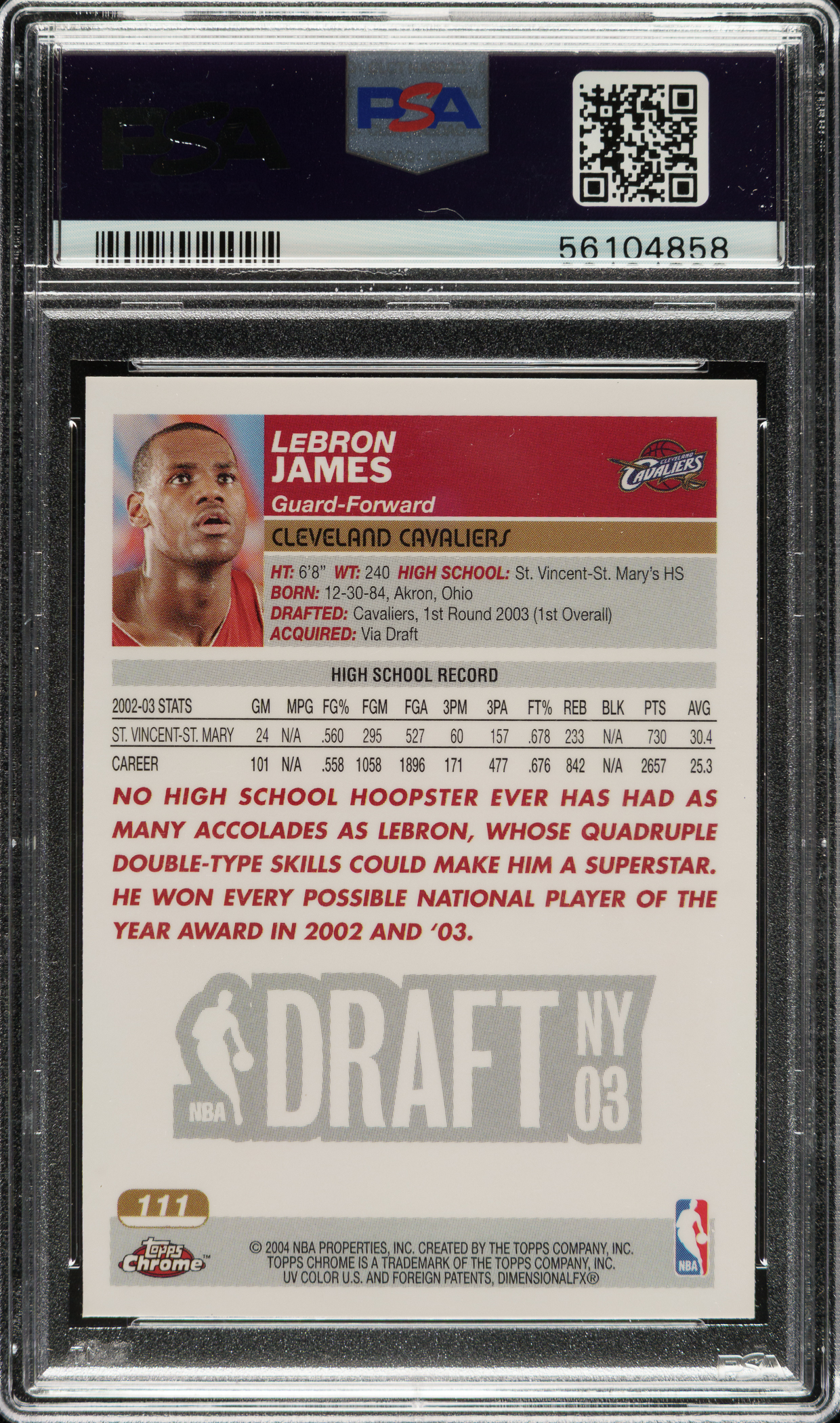 Graded MINT 9 by PSA. Cleveland Cavaliers.