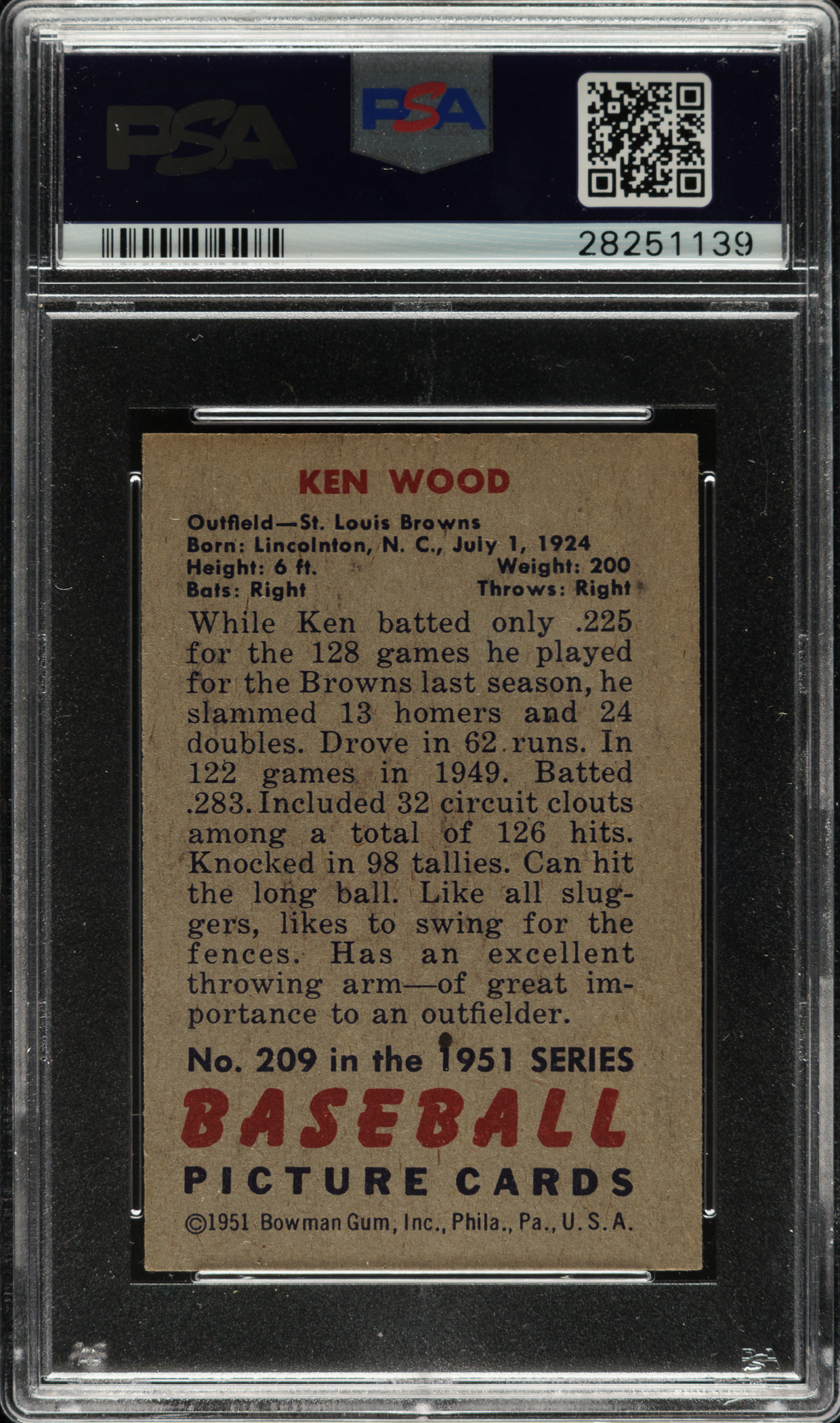 Graded NM+ 7.5 by PSA. St. Louis Browns.