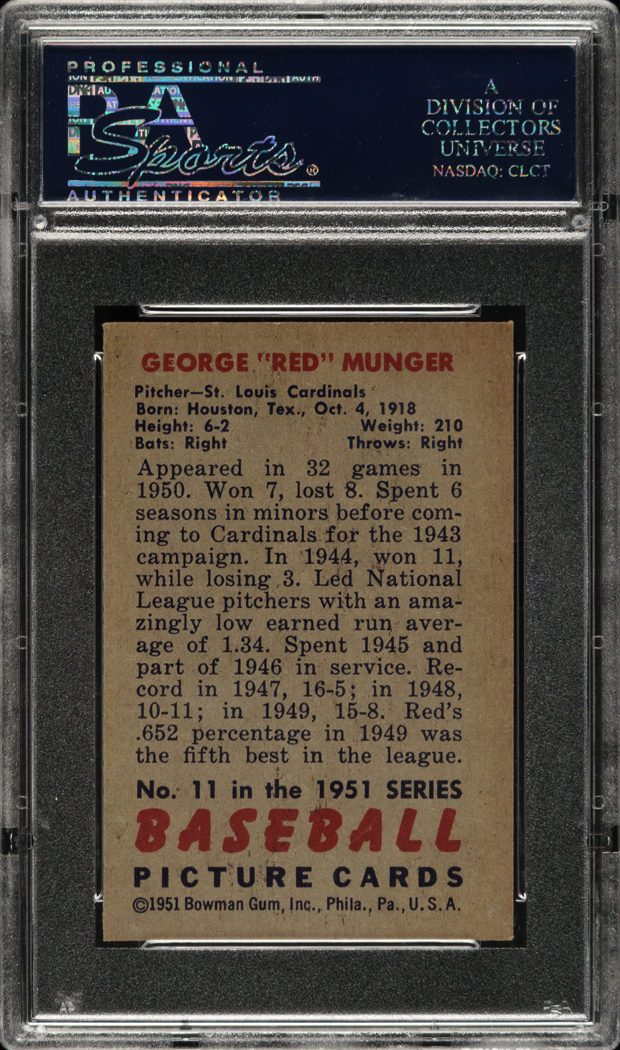 Graded NM 7 by PSA. St. Louis Cardinals.