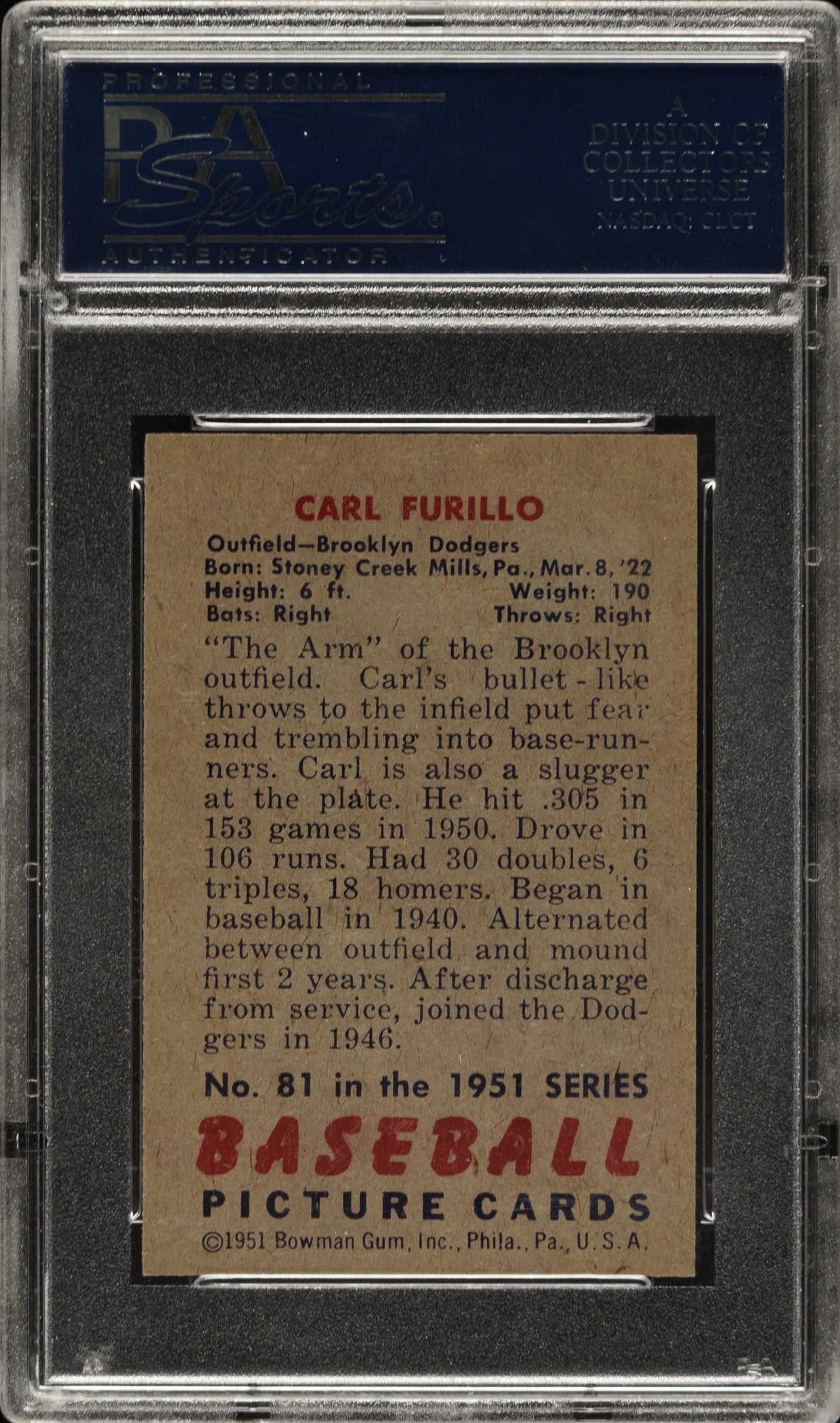 Graded NM 7 by PSA. Brooklyn Dodgers.