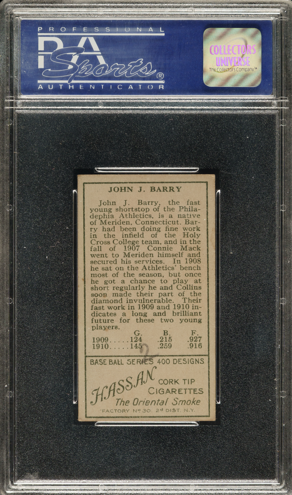 Lot # 1623: 1911 T205 Gold Border Jack Barry PSA EX 5 (MK)